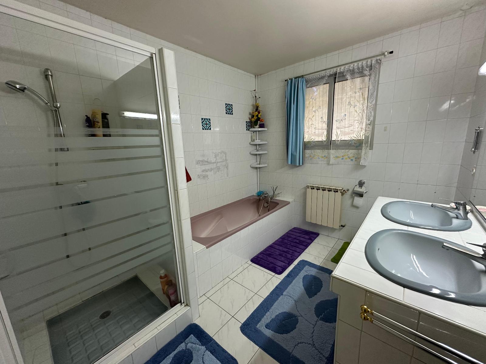 À l'étage, trois chambres vous attendent équipées de placard de rangements. La salle de bains dispose à la fois d'une douche, d'une baignoire et d'un meuble double vasque.