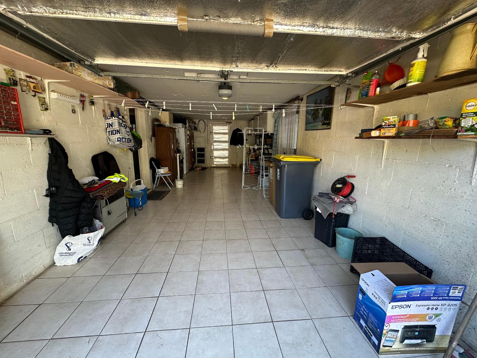 Le garage est équipé d'un portail motorisé, une porte arrière permet un accès direct au jardin.