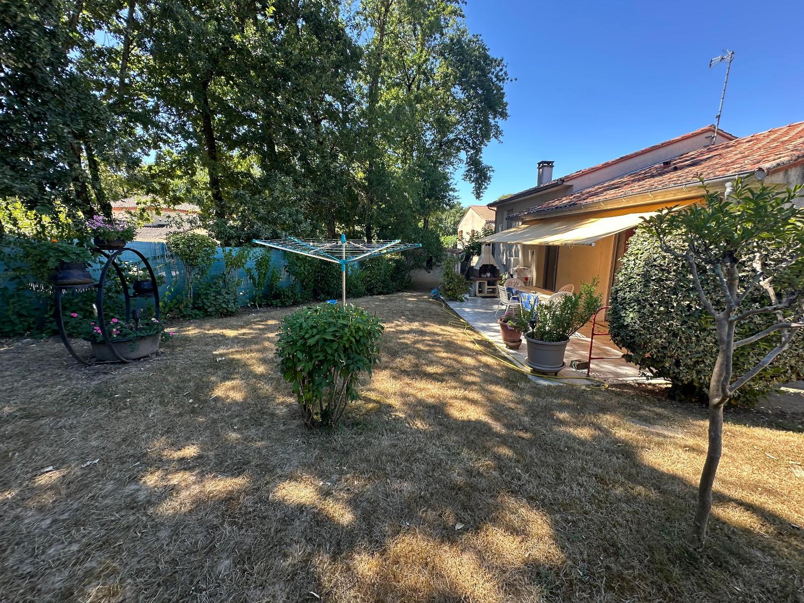 Le jardin arboré entoure la maison, créant un environnement verdoyant et paisible. Il comprend également un cabanon de rangement.