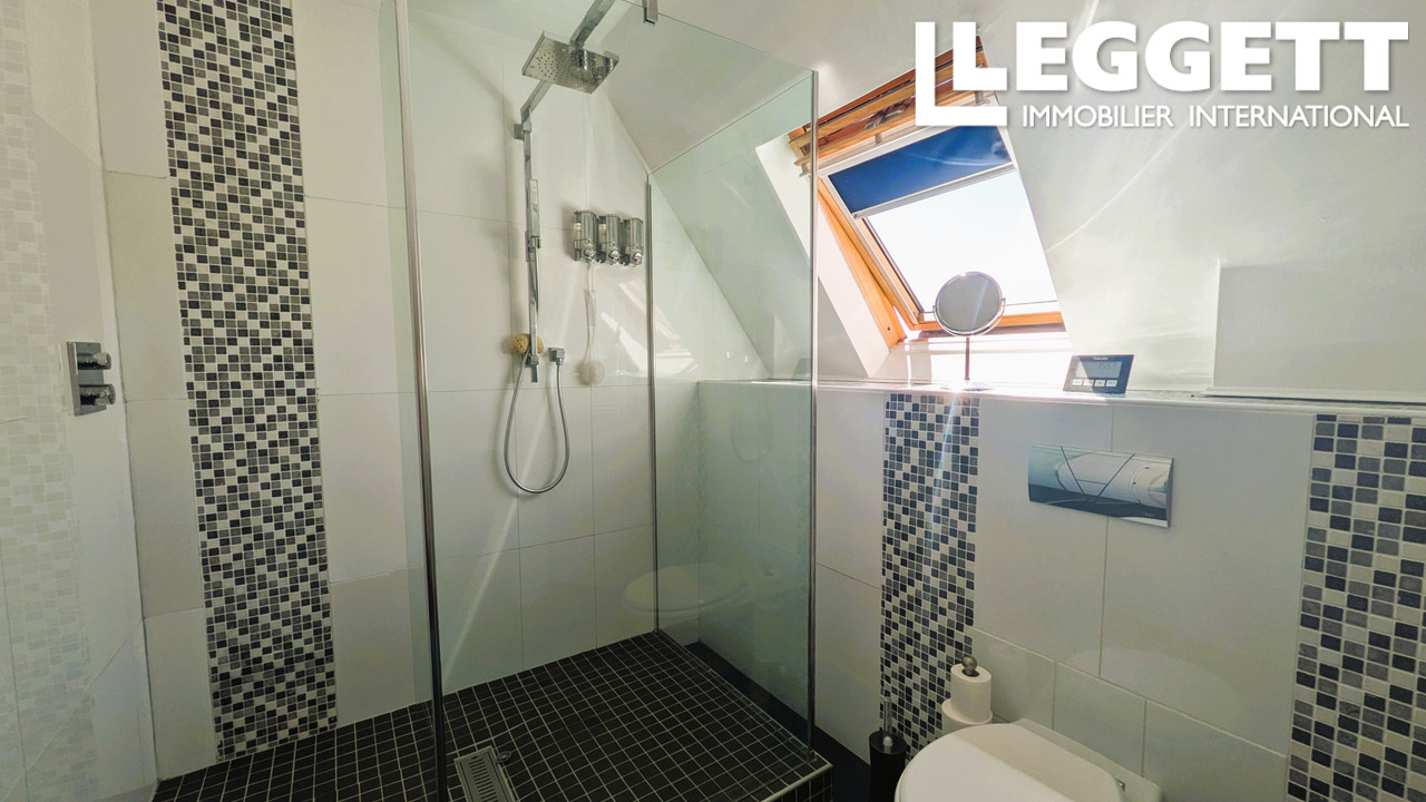 A38366CB79 - Maison des années 1930 entièrement modernisée sur trois niveaux, avec vue imprenable sur le lac. Jardins en terrasse exposés sud, grand balcon, patios et piscine hexagonale pour profiter pleinement de l'extérieur. Le rez-de-chaussée offre un vaste espace cuisine/salon avec plans de travail en granit, électroménager haut de gamme et deux portes-fenêtres ouvrant sur le balcon. Salle à manger séparée, chambre double et salle de bains orientée sud. À l'étage, mezzanine avec bureau, salle de couture/chambre et suite parentale avec salle d'eau. En bas, buanderie, salle d'eau, cave et salon d'hiver/chambre d'amis avec poêle à pellets et accès à la terrasse. Un parfait mélange de charme d'époque et de confort moderne, dans un cadre paisible idéal pour la marche, le vélo et la pêche.