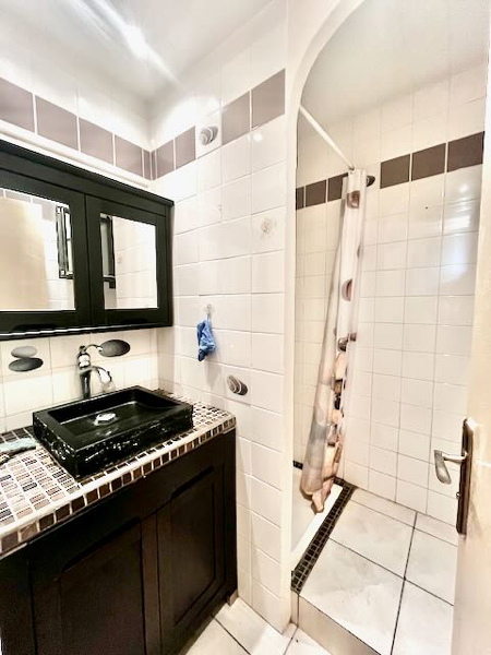 Domaine de la Coudoulière : Appartement T2 en rez-de-chaussée de 31,57m2 Loi Carrez comprenant une entrée, un séjour avec cuisine US équipée de 19m2 donnant sur terrasse fermée expo Sud d'env.8m2, une chambre avec placard, une salle d'eau avec fenêtre, wc. Parking privatif et cave. Parfait Etat. Rare