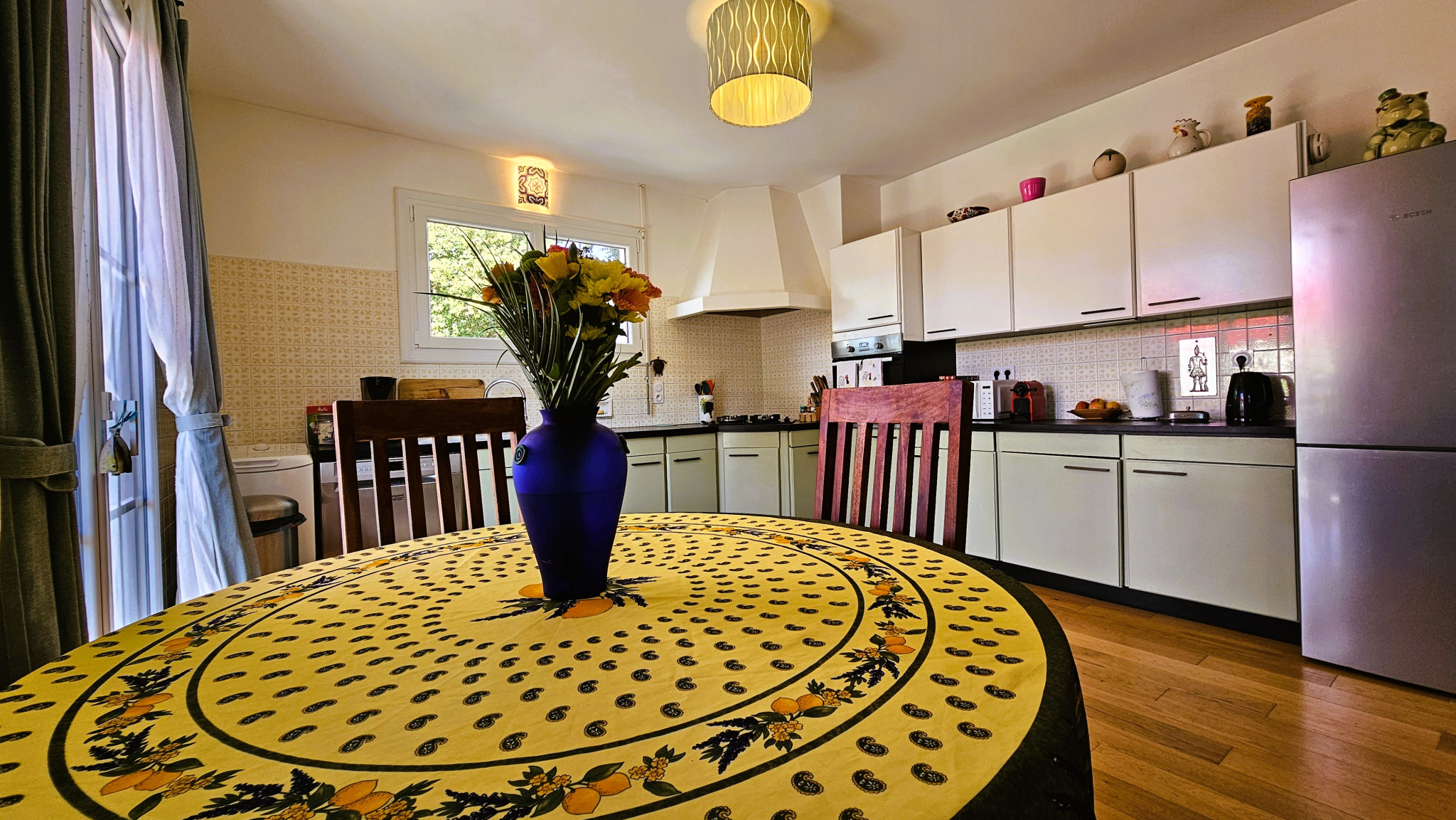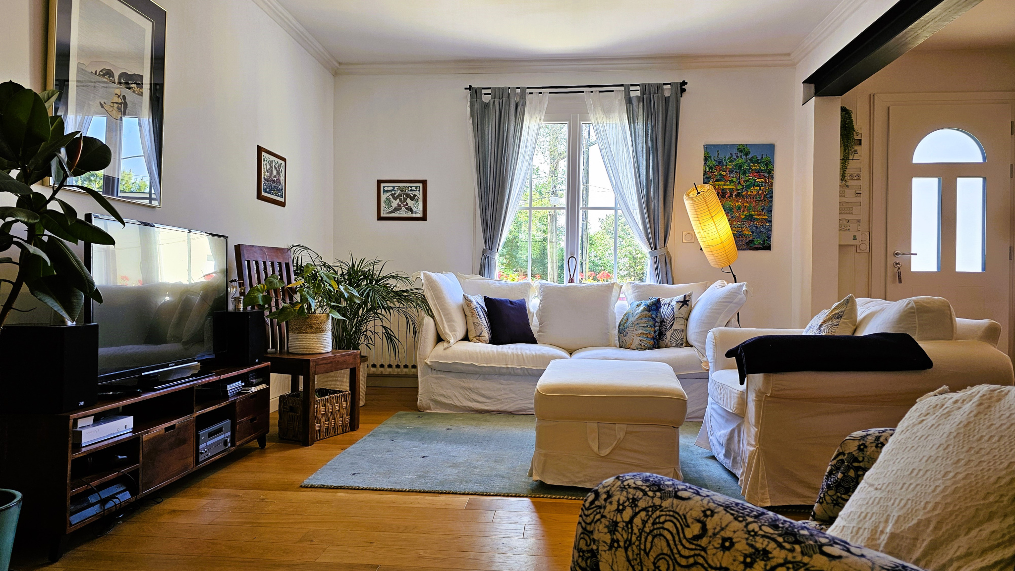 Développant environ 140 m2 de surface habitable répartie sur deux niveaux, cette maison baignée de lumière séduit par sa luminosité, ses volumes bien pensés et la qualité de son environnement.