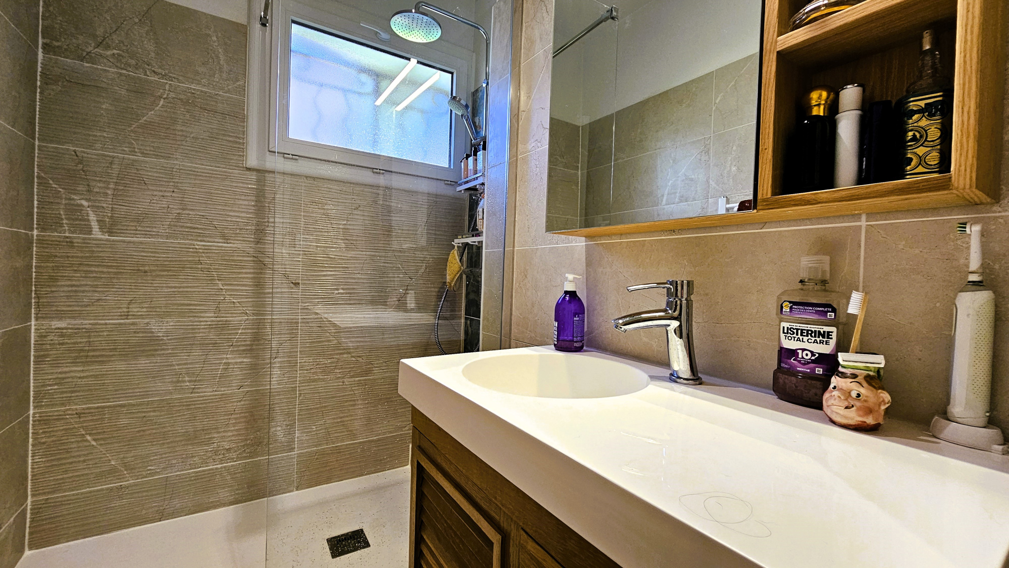Le tout s'ouvre sur un terrain entièrement clôturé, paysager et arboré, de 580 m2 avec possibilité de stationner trois voitures. Le jardin est soigneusement entretenu offre une ambiance apaisante et méditerranéenne.
