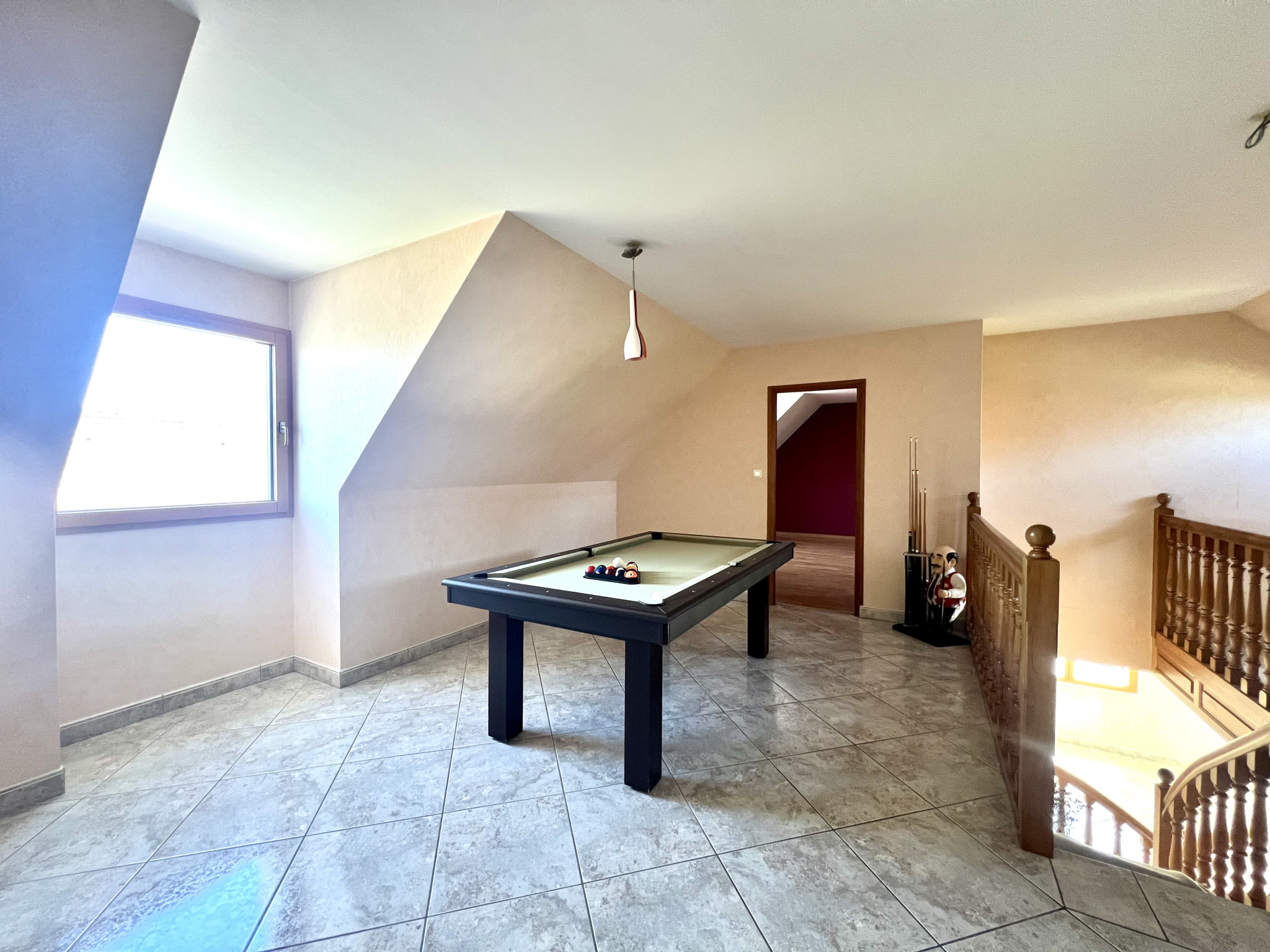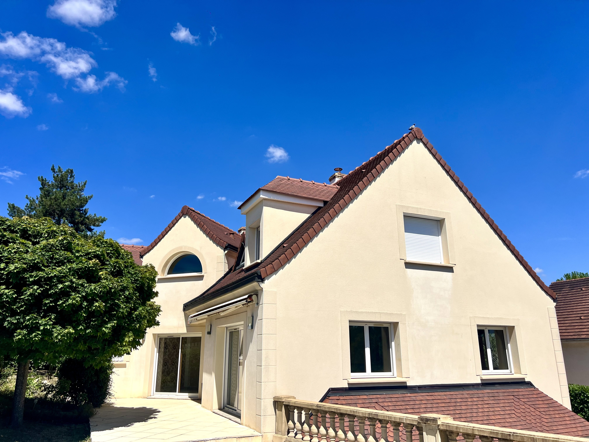 Dans un cadre résidentiel privilégié, belle et vaste maison lumineuse de 230 m2 avec jardin agrémenté d'une piscine chauffée. Au rez-de-chaussée : entrée, grand salon-séjour de 50m2 (Cheminée insert) donnant sur terrasse, cuisine séparée équipée, trois chambres dont une suite parentale avec salle d'eau, salle de bains et wc. indépendant. À l'étage : belle mezzanine, trois grandes chambres, salle de bain et WC séparé. Sous-sol complet avec garage 4 voitures, cave, local piscine, chaufferie et wc. À proximité immédiate des écoles, tennis, commerces et transports. Un bien rare, confortable, lumineux, au très bon classement énergétique (DPE: C). À visiter sans attendre !