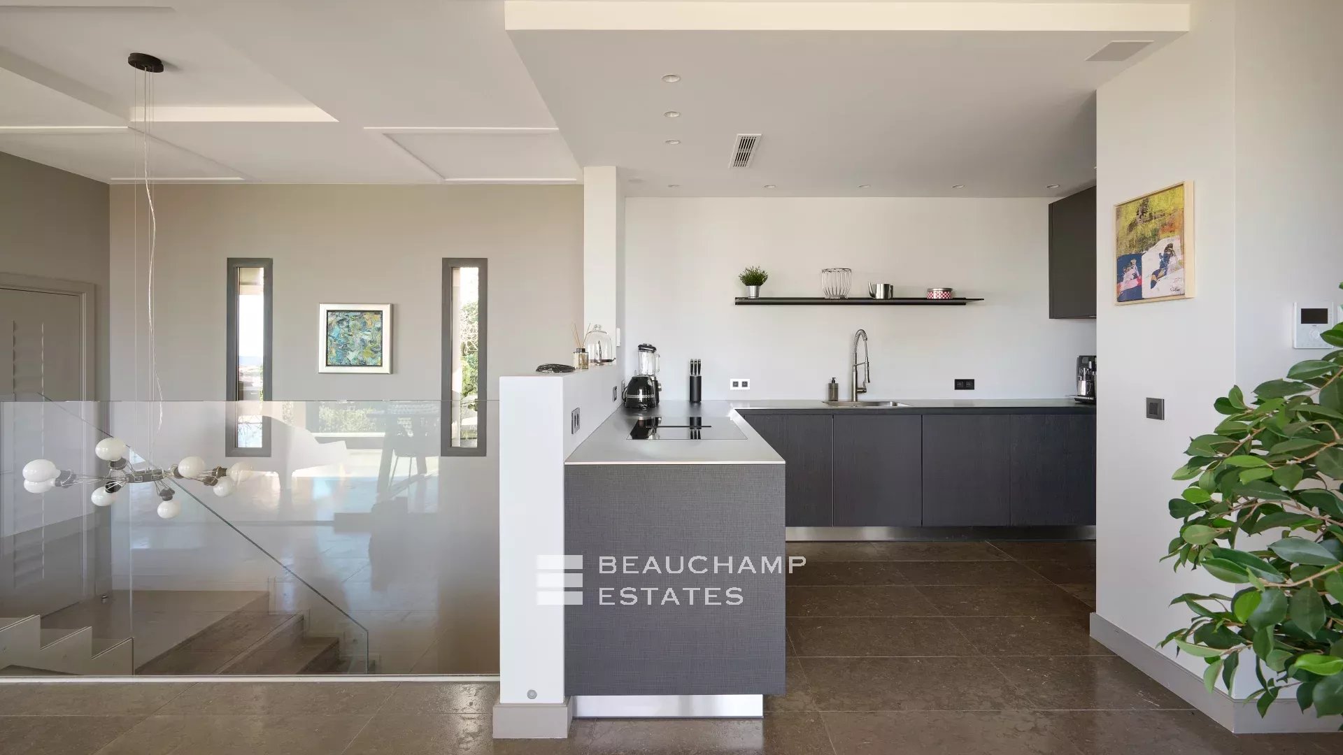 Le jardin méditerranéen de 2723m2 et la terrasse panoramique prolongent les espaces de vie, créant un cadre idéal pour profiter de couchers de soleil mémorables.