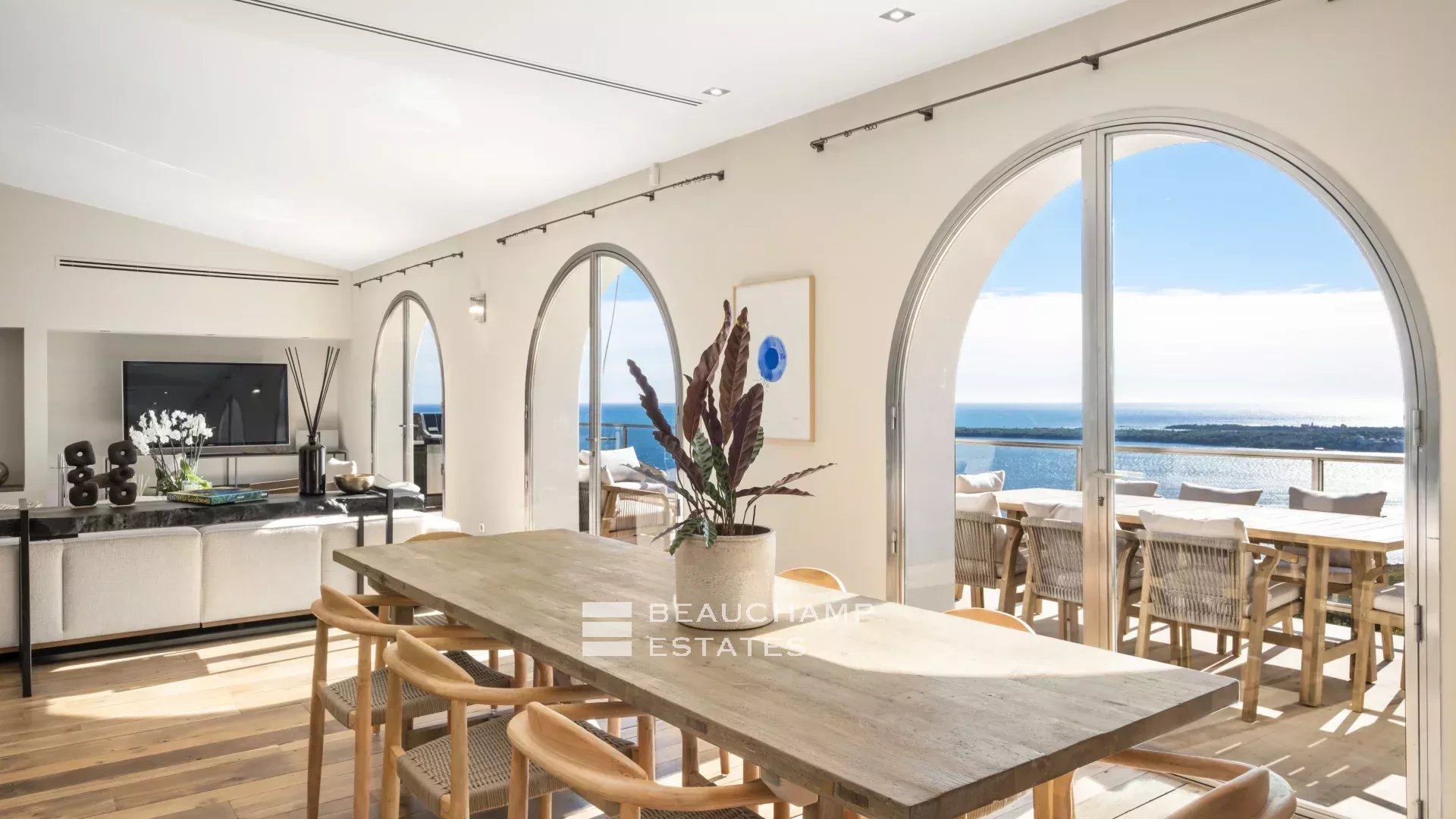 Située en position dominante au cœur de la prestigieuse Californie à Cannes, cette villa contemporaine d’environ 290 m² offre une vue mer panoramique exceptionnelle et s’étend sur un terrain de 1 000 m².