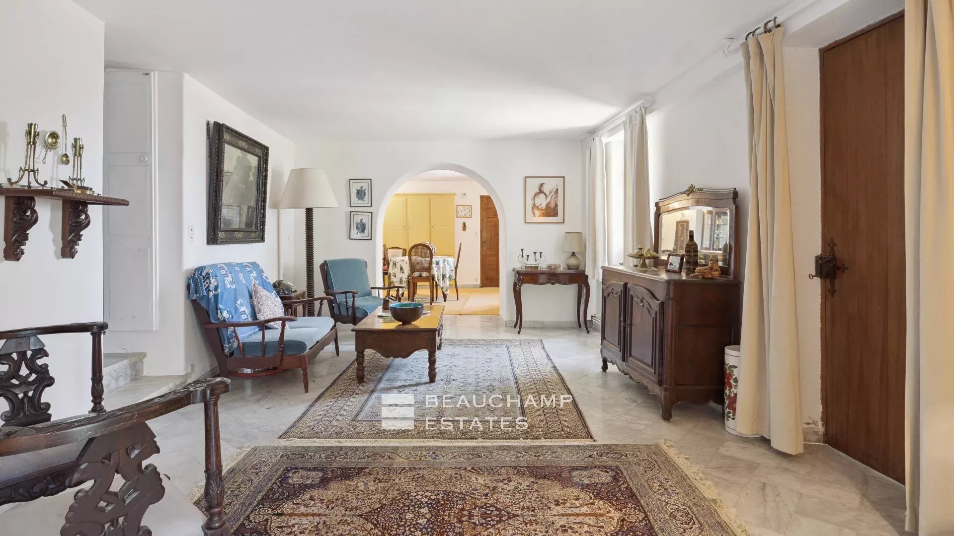 La bâtisse principale, d’environ 290 m², propose de vastes espaces à repenser, avec cuisine, double salon, cinq chambres et trois salles de bain.
