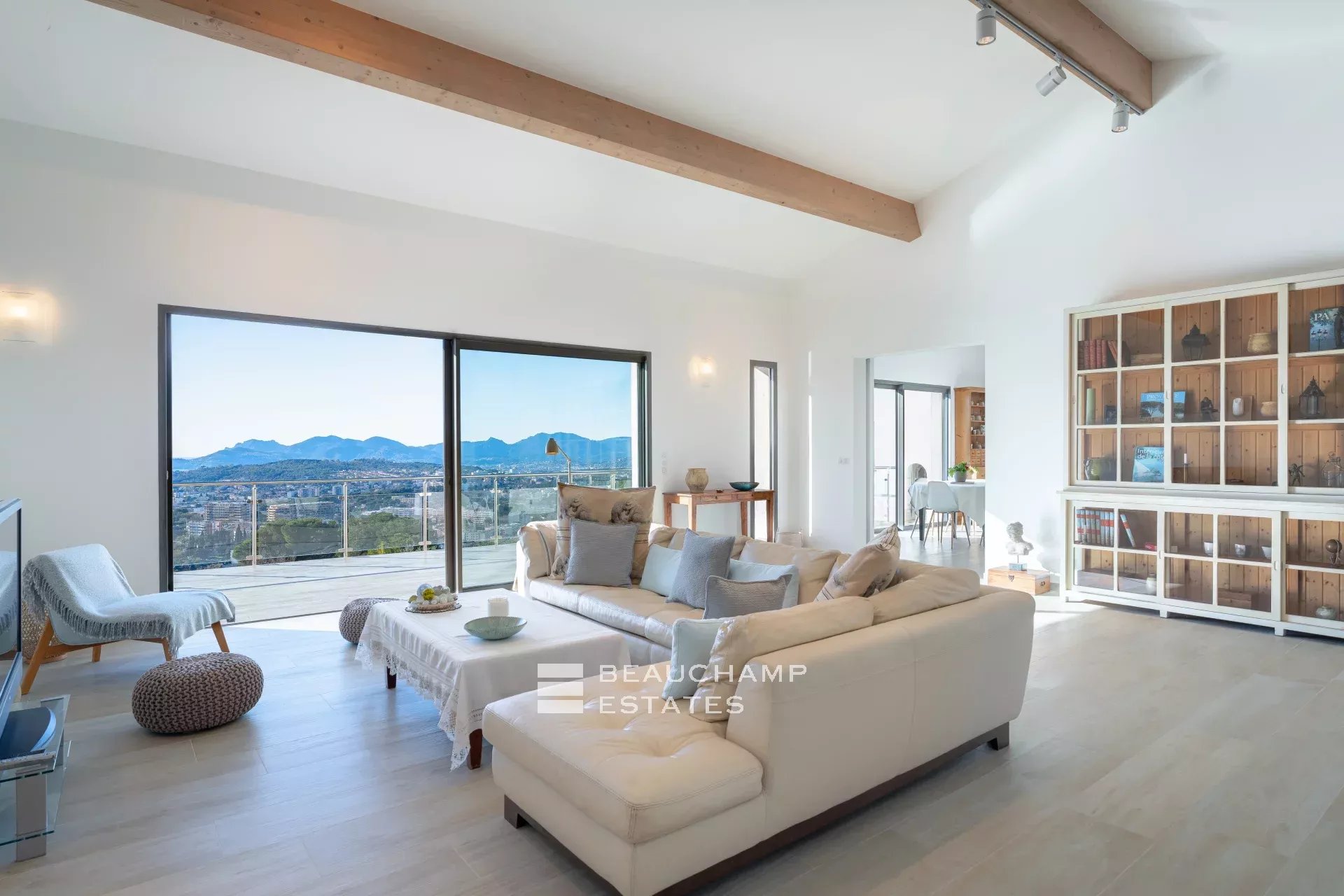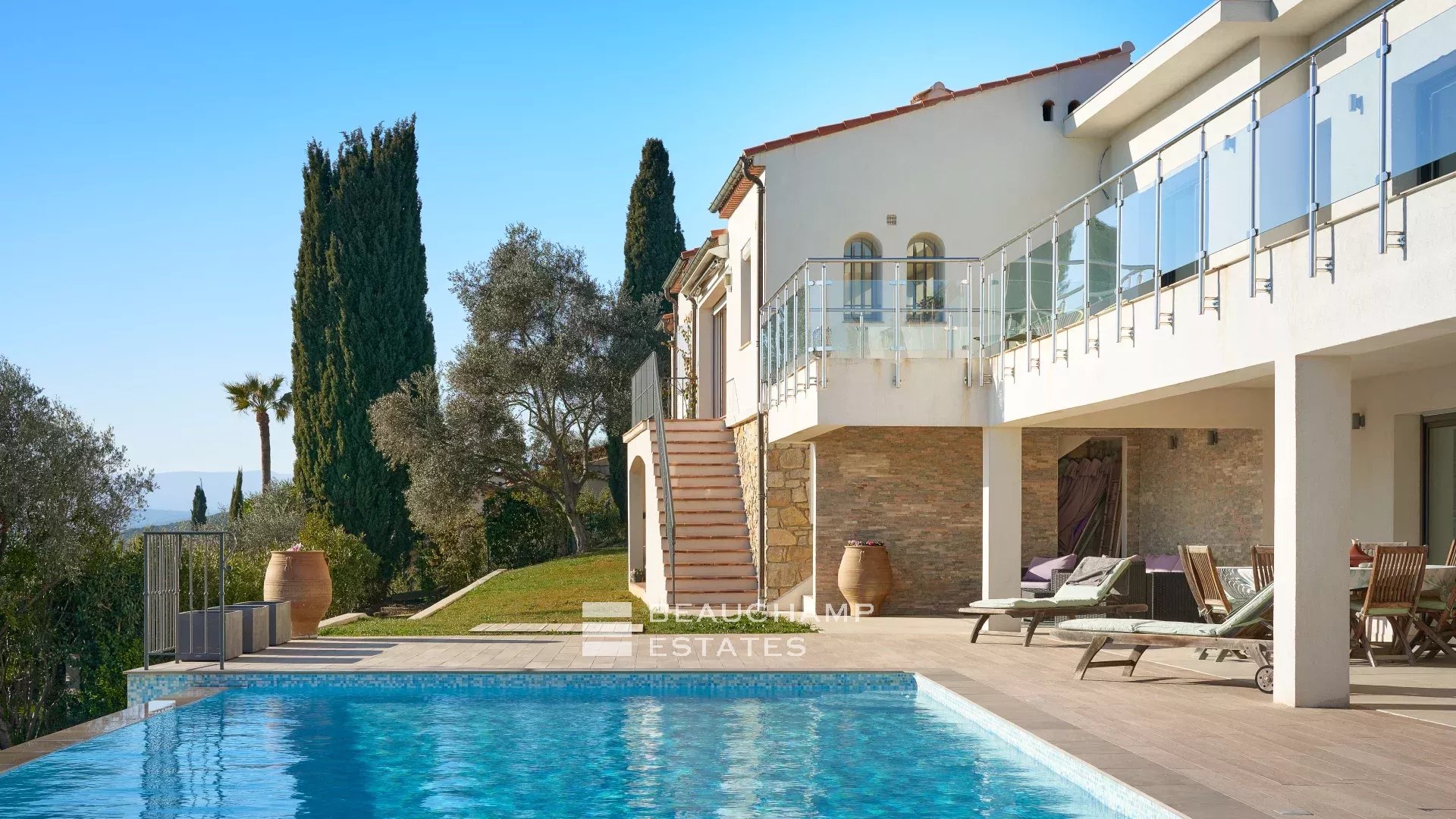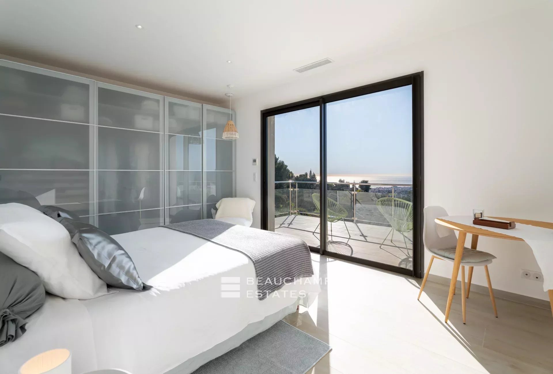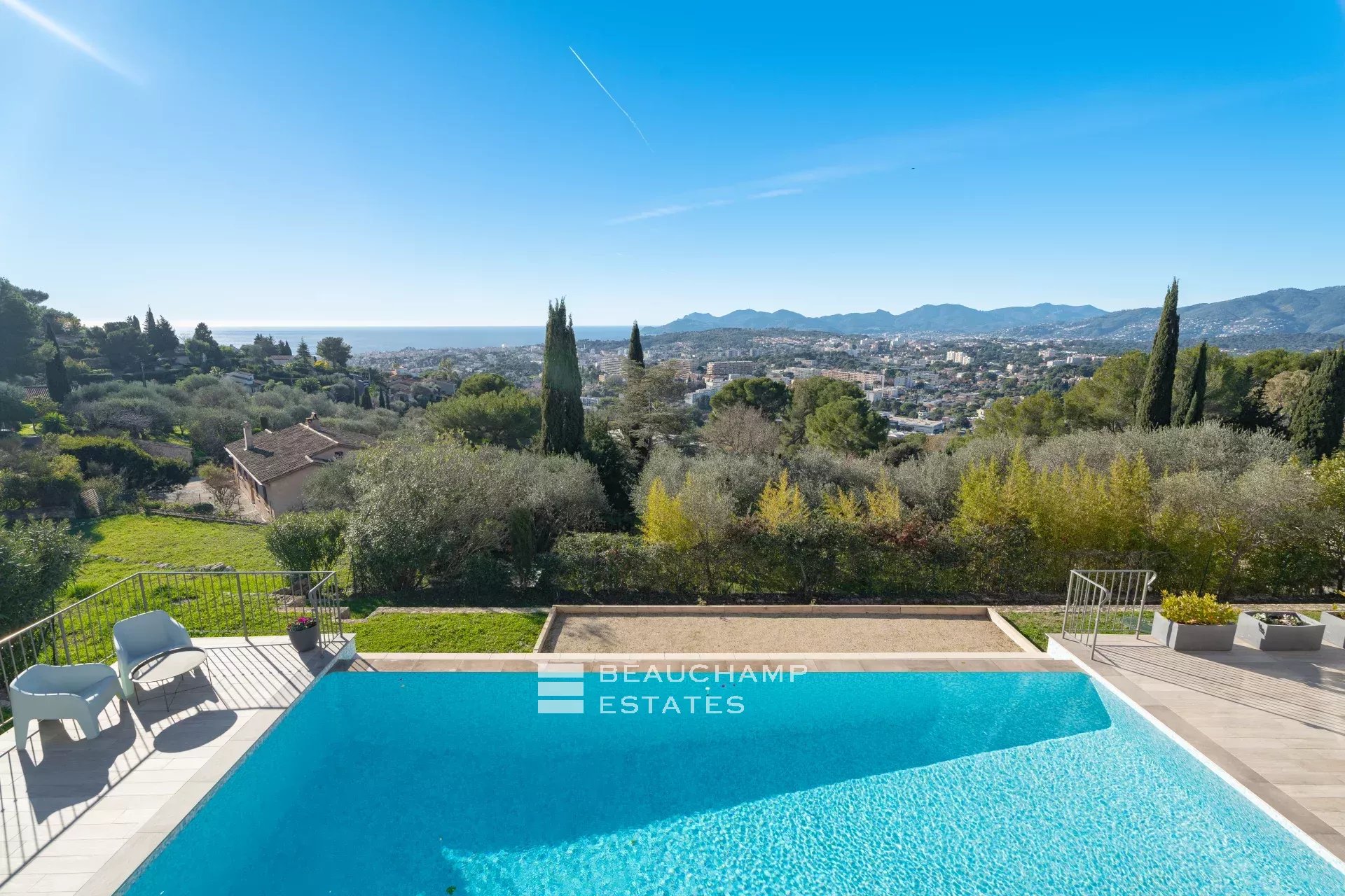 Idéalement située, cette propriété récemment agrandie d’environ 450 m² offre une vue spectaculaire sur la baie de Cannes avec une vue mer panoramique. Chaque pièce de la maison a été pensée pour capturer et sublimer ce panorama envoûtant.