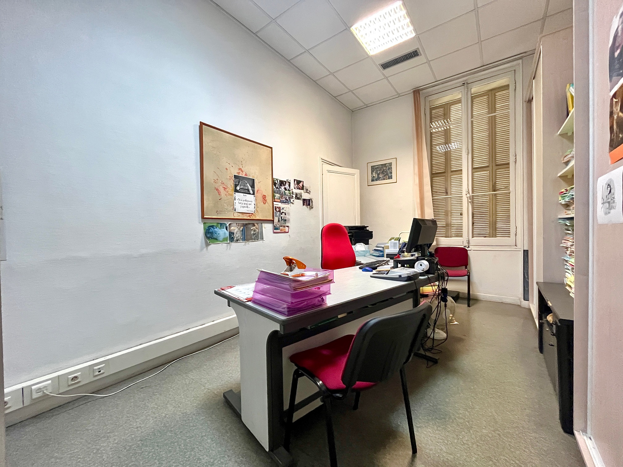 Coeur du centre ville, au rez-de-chaussée surélevé d'un Palace bourgeois, à deux pas des jardins Bioves, l'agence Testa Immbilier vous propose cet appartement de 201 m2, actuellement exploité en bureaux profession libéral mais yant l'avantage de posséder les deux destinations (murs professionnels ou habitation) composé d'une grande entrée avec couloir de 30.9 m2, Bureau 1 : 16.6 m2, Bureau 2 : 16.4 m2, Bureau 3 : 16.3 m2, Bureau 4 : 16.5 m2, Bureau 5 : 18.4 m2, Bureau 6 : 35.3 m2, Bureau 7 : 40 m2, WC (2.7 m2), Cuisine avec dégagement : 9 m2. Cave au sous-sol, réhabilitée en salle de réunion de 33.2 m2, avec porte sécurisée.