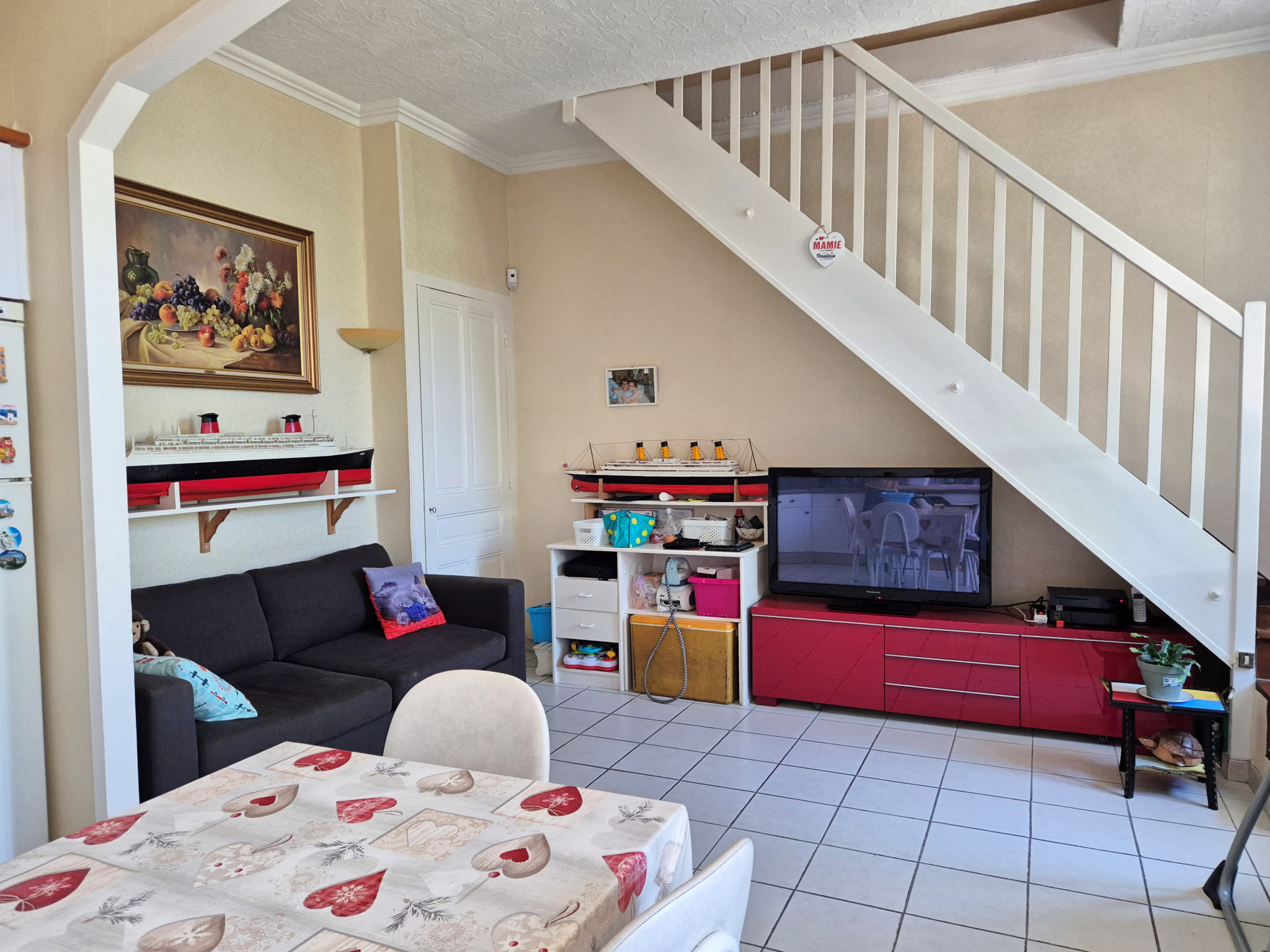 Le rez-de-chaussée accueille la cuisine et le séjour avec un accès direct au jardin de 189 m2. L'étage comprend 2 grandes chambres avec placards, un espace bureau et une spacieuse salle de bains avec WC.
