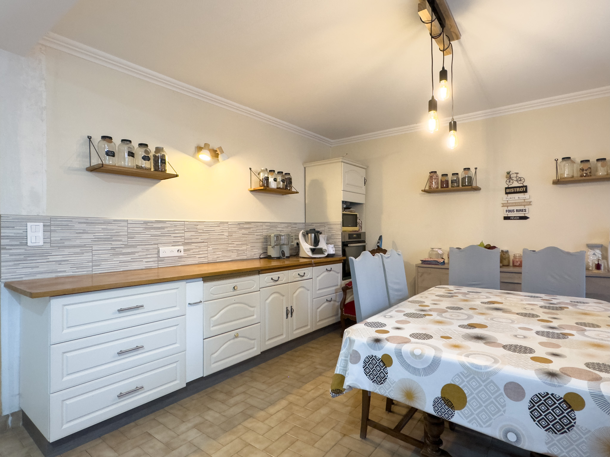 Au rez-de-chaussée, vous profiterez d'une cuisine-salle à manger de 35m2 environ avec cuisine équipée et d'une salle d'eau de 5m2 environ avec WC et espace buanderie.