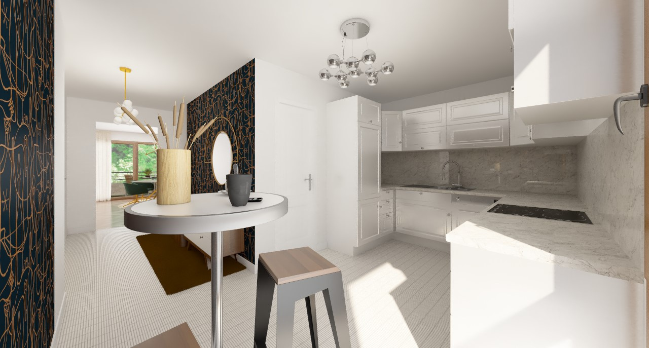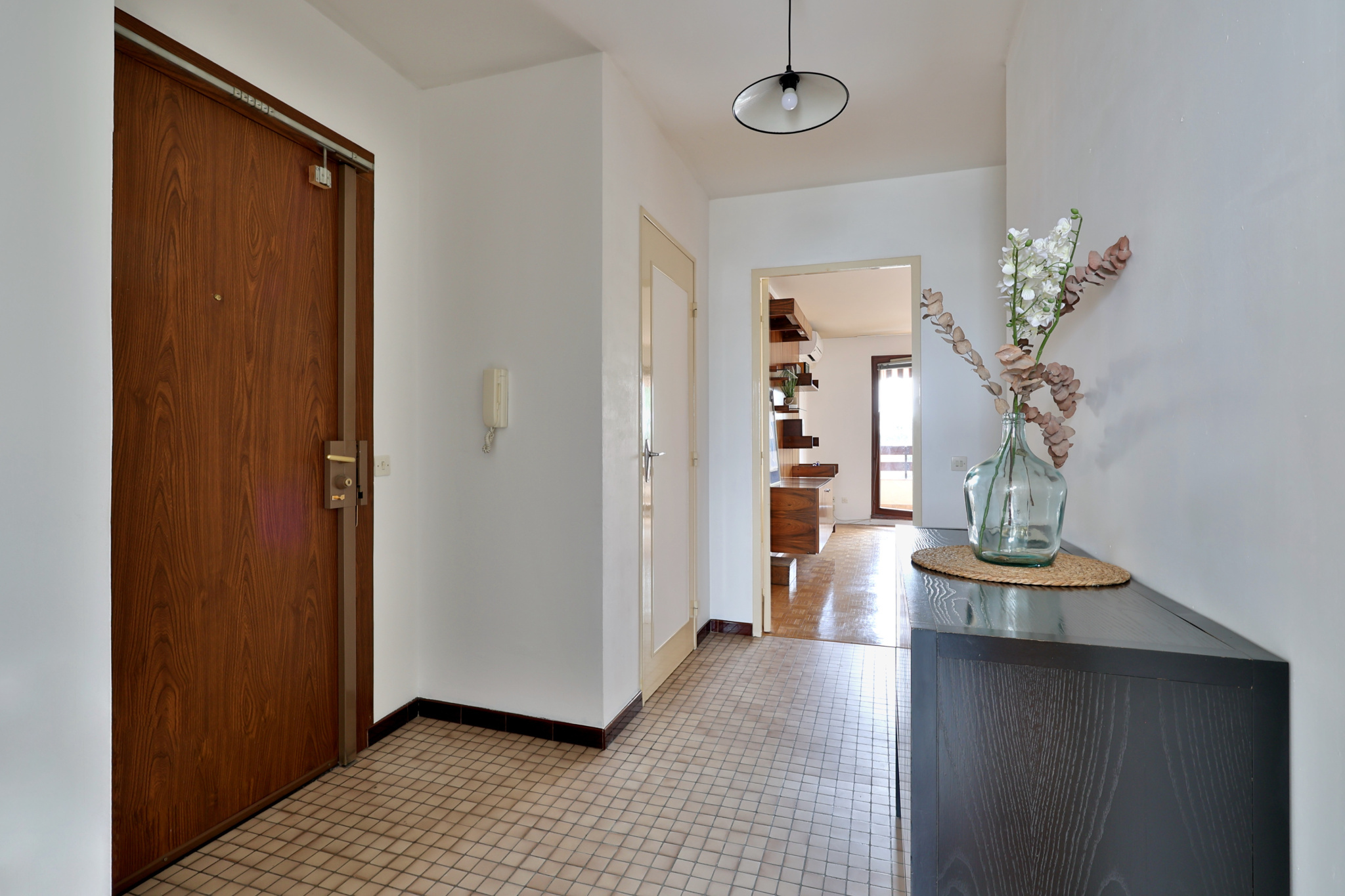 Le bien est composé d'un hall d'entrée avec un grand placard, d'une cuisine indépendante équipée puis d'un salon séjour ouvrant sur le balcon exposé sud.