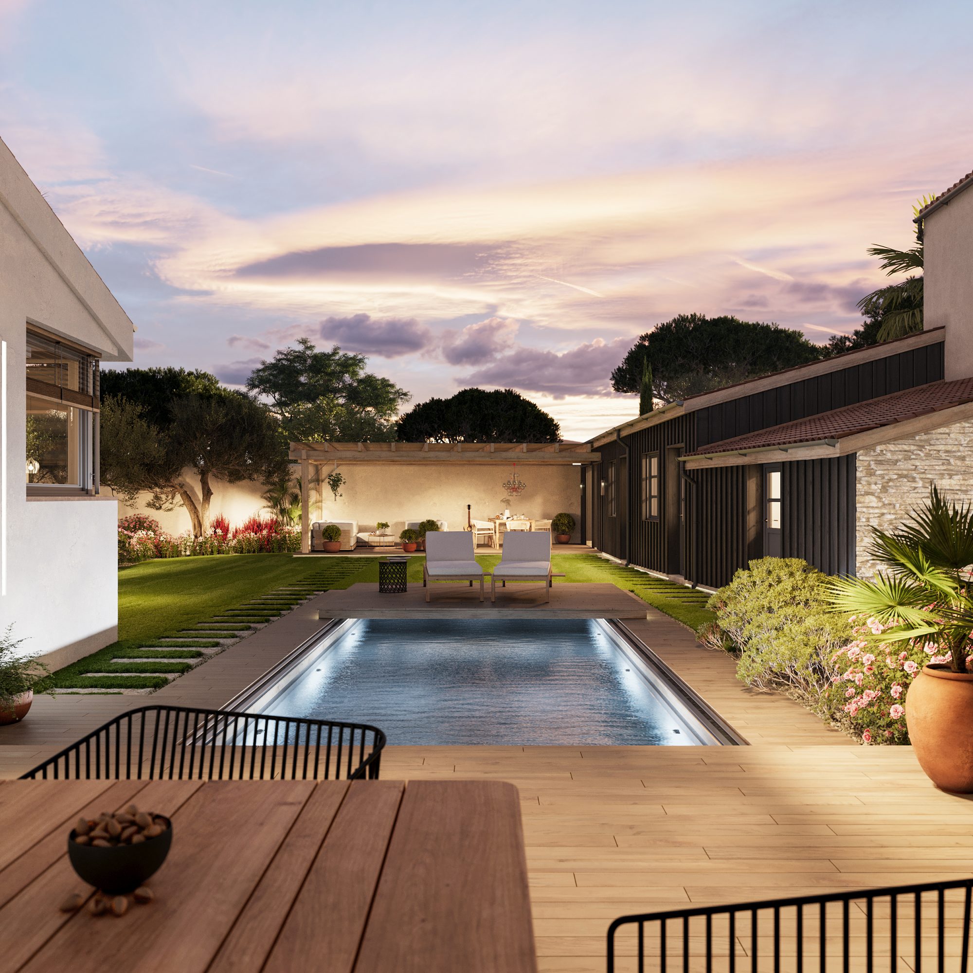 Cette propriété se situe sur un terrain d'environ 900m² entièrement clos et sans vis-à-vis, avec un double accès. Ultra modulaire et pensée pour tous les usages, la propriété et ses dépendances s'adaptent entièrement à toutes les envies.