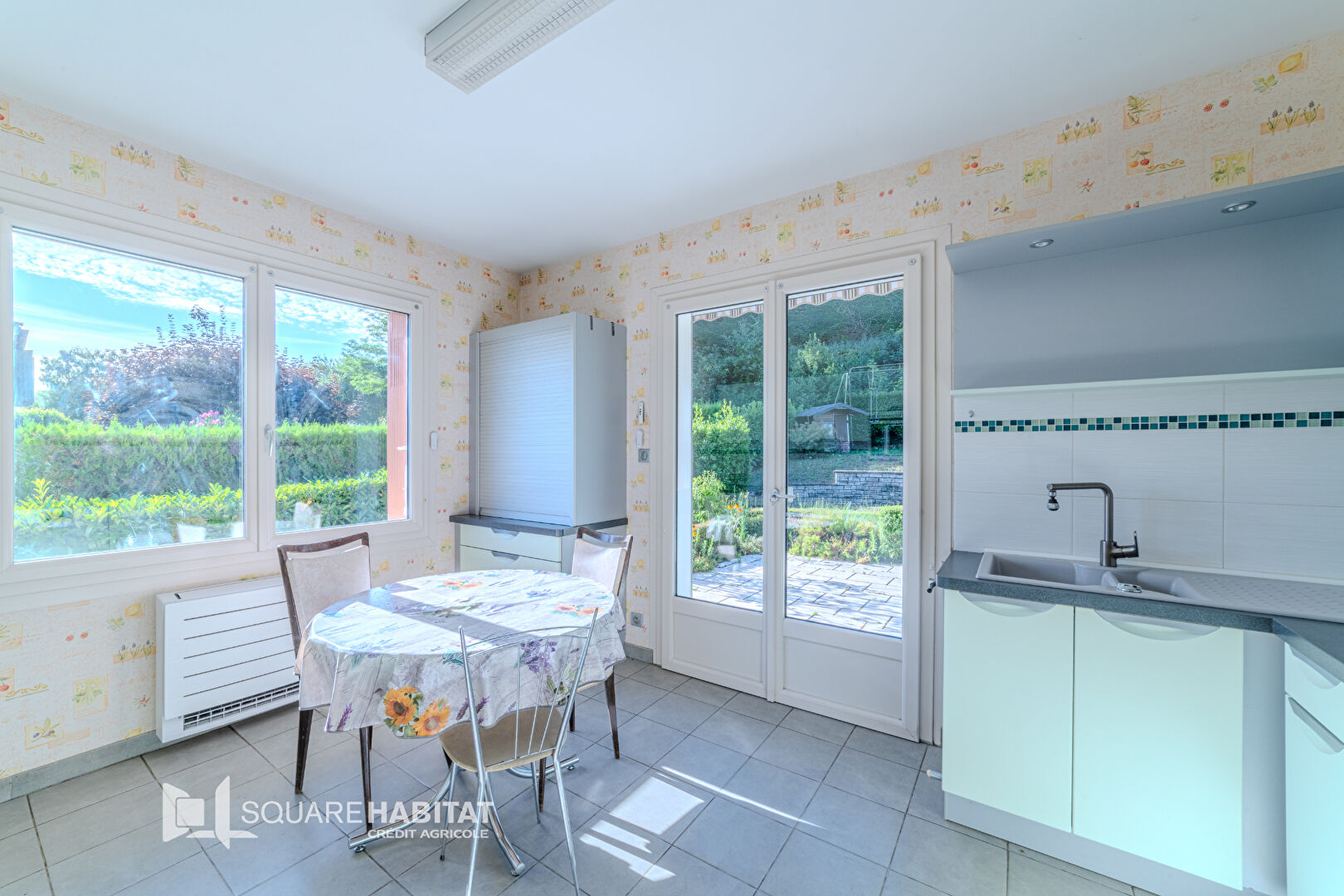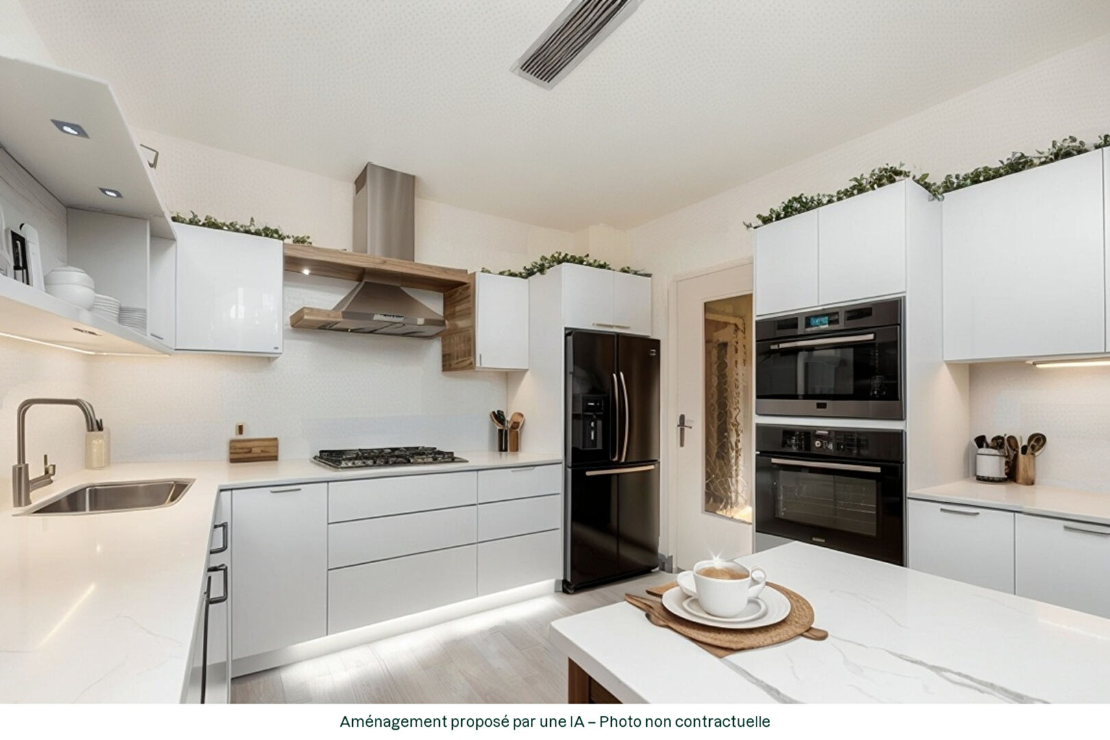 La cuisine attenante, fonctionnelle et chaleureuse, complète harmonieusement l'espace de vie.