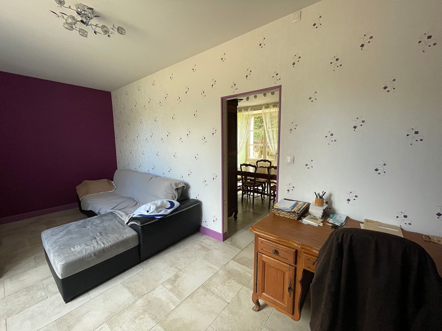 la maison propose déja 84 m² habitable avec une entrée , une cuisine aménagée et équipée impeccable , un salon , 2 chambres et un bureau , salle d'eau , wc et sans oublier un grenier d'un potentiel d'au moins 70 m² qui vous permet de créer d'autres pièces ...