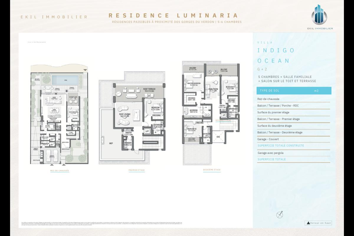Découvrez la magnifique villa neuve "INDIGO OCEAN", située dans le pittoresque village de Fox-Amphoux, dans le département du Var, en région Provence-Alpes-Côte d'Azur. Cette propriété exceptionnelle est parfaite pour les familles en quête d'un cadre de vie luxueux et paisible. Caractéristiques du Projet : Structure : Villa "INDIGO OCEAN" composée de 3 niveaux : Rez-de-chaussée (RDC), un étage (R+1) et un deuxième étage (R+2). Extérieur : Chaque niveau dispose d'une terrasse ou d'un balcon, offrant des vues imprenables sur les paysages environnants. Intérieur : 6 chambres spacieuses et lumineuses. 1 salle familiale confortable. Un salon élégant situé sur la terrasse, idéal pour les moments de détente en famille ou entre amis. Un garage couvert au niveau du rez-de-chaussée, offrant un espace de stationnement sécurisé. Emplacement : Située dans le quartier recherché du Haut Clavet à Fox-Amphoux, la villa "INDIGO OCEAN" bénéficie d'un emplacement idéal, alliant tranquillité et proximité des commodités locales. Profitez de la douceur de vivre de la Provence tout en étant à proximité des axes routiers majeurs pour un accès facile aux villes voisines. Atouts : Construction neuve avec des matériaux de haute qualité. Conception architecturale moderne et élégante. Espaces extérieurs aménagés pour profiter pleinement du climat méditerranéen. Garage couvert pour une protection optimale de vos véhicules. Ne manquez pas cette opportunité unique de devenir propriétaire de la villa "INDIGO OCEAN", une résidence d'exception dans l'un des plus beaux villages du Var. Contactez-nous dès aujourd'hui pour plus d'informations ou pour organiser une visite.