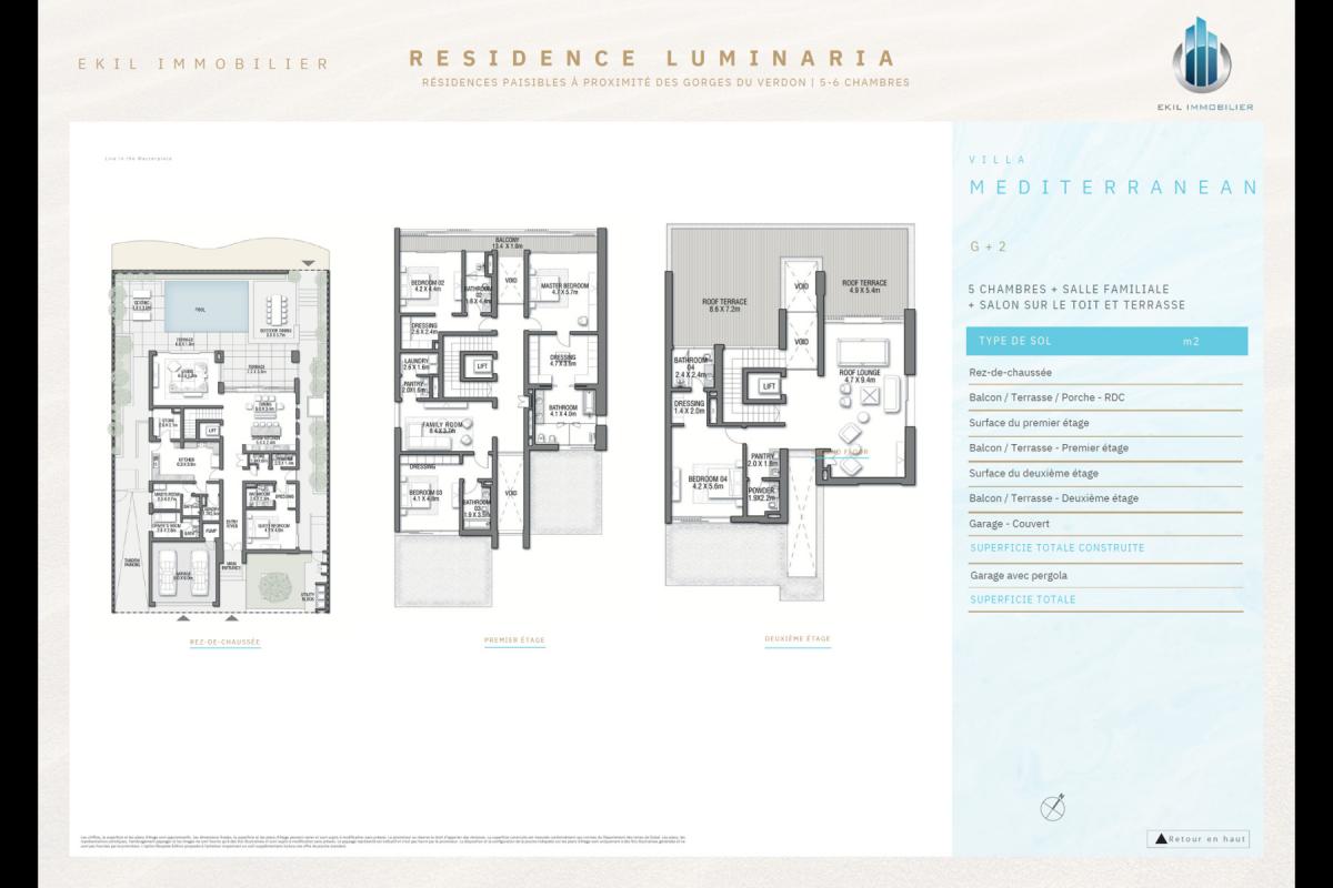 Découvrez cette somptueuse villa neuve "MEDITTERANEAN" située dans le charmant village de Fox-Amphoux, dans le département du Var, en région Provence-Alpes-Côte d'Azur. Cette propriété exceptionnelle est idéale pour les familles recherchant un cadre de vie paisible et luxueux. Caractéristiques du Projet : Structure : Villa "MEDITTERANEAN" composée de 3 niveaux : Rez-de-chaussée (RDC), un étage (R+1) et un deuxième étage (R+2). Extérieur : Chaque niveau dispose d'une terrasse ou d'un balcon, offrant des vues imprenables sur les paysages environnants. Intérieur : 6 chambres spacieuses et lumineuses. 1 salle familiale confortable. Un salon élégant situé sur la terrasse, parfait pour les moments de détente en famille ou entre amis. Un garage couvert au niveau du rez-de-chaussée, offrant un espace de stationnement sécurisé. Emplacement : Située dans le quartier prisé du Haut Clavet à Fox-Amphoux, la villa "MEDITTERANEAN" bénéficie d'un emplacement idéal, alliant tranquillité et proximité des commodités locales. Profitez de la douceur de vivre de la Provence tout en étant à proximité des axes routiers majeurs pour un accès facile aux villes voisines. Atouts : Construction neuve avec des matériaux de haute qualité. Conception architecturale moderne et élégante. Espaces extérieurs aménagés pour profiter pleinement du climat méditerranéen. Garage couvert pour une protection optimale de vos véhicules. Ne manquez pas cette opportunité unique de devenir propriétaire de la villa "MEDITTERANEAN", une résidence d'exception dans l'un des plus beaux villages du Var. Contactez-nous dès aujourd'hui pour plus d'informations ou pour organiser une visite.
