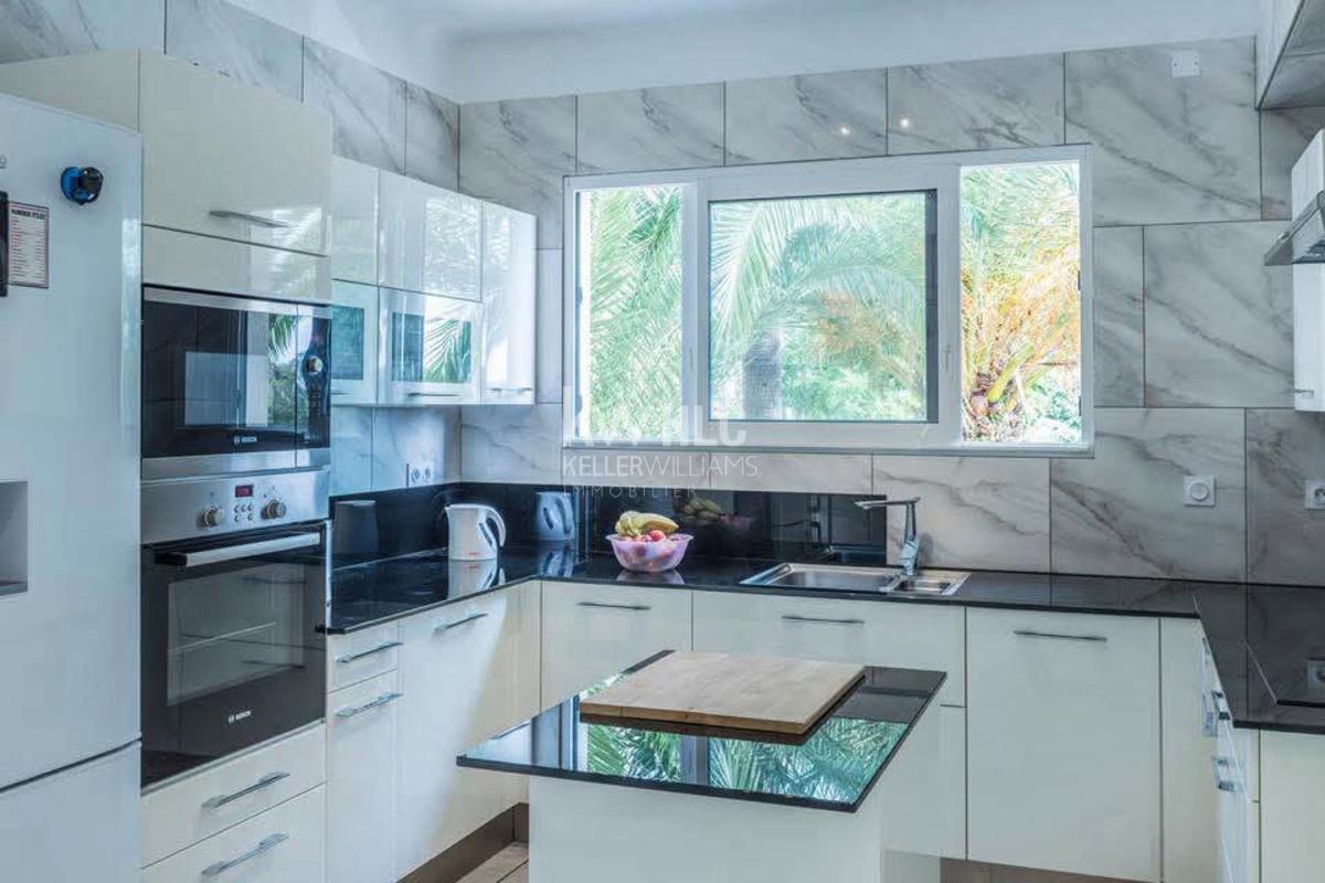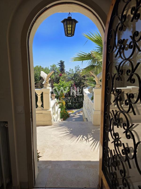 GOLFE-JUAN - VILLA D'EXCEPTION AVEC VUE MER KW HLC vous invite à découvrir cette superbe villa de 224 m², nichée aux portes du prestigieux quartier Super Cannes, offrant une vue mer imprenable et un cadre de vie idyllique. Édifiée sur un magnifique terrain paysager aux plantations exotiques, de 1 237 m², cette propriété baignée de lumière propose un agencement optimal. Description : 8 pièces lumineuses comprenant: Rez-de-Chaussée: Entrée ouvrant sur le séjour, salle à manger et cuisine indépendante équipée, un couloir desservant, une suite parentale avec salle de bains. 3 chambres supplémentaires, 1 salle de bains, 3 wc Toutes les pièces donnant sur la terrasse et piscine. En rez-de-jardin : 1 chambre, salle de sport, buanderie, cave à vin et garage fermé. Extérieurs : Piscine au sel avec large terrasse et belle vue mer, jardin exotique agrémenté de deux bassins à poissons, espace détente avec coin barbecue. Nombreux stationnements extérieurs (4 véhicules) Un véritable havre de paix à quatre minutes à pied des plages, 4 km de Cannes et de Juan les pins, Proche de toutes les commodités. Il y a l'École Élémentaire Gachon à moins de 10 minutes à pied. Niveau transports, on trouve la ligne de bus LR200H (Pont de l'Aube-VALLAURIS) ainsi que la gare Golfe , restaurants, ports de plaisance, commerces, boulangeries, supermarchés, bureau de poste et épiceries. Accès autoroute A8 à 5 km. Monaco à 40 km. Les informations sur les risques auxquels ce bien est exposé sont disponibles sur le site Géorisques : www.georisques.gouv.fr. Contactez notre agence immobilière KW HLC pour obtenir de plus amples renseignements sur cette villa.