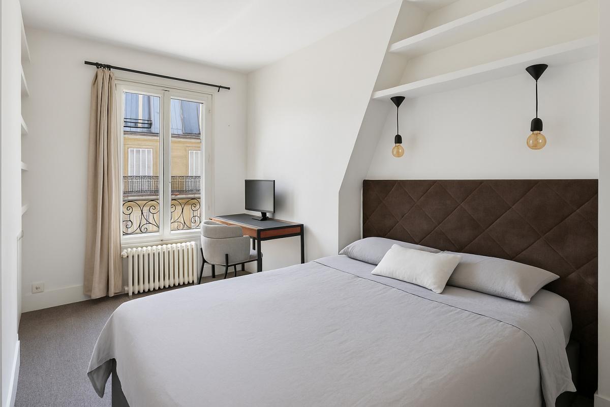 Sans voisin mitoyen et situé en dernier étage, l'appartement offre un calme absolu, idéal pour un cadre de vie serein en plein Paris.