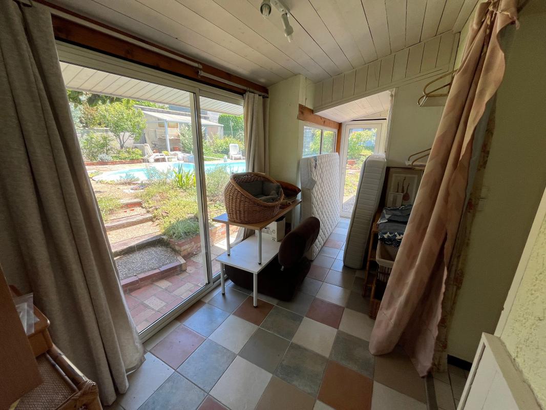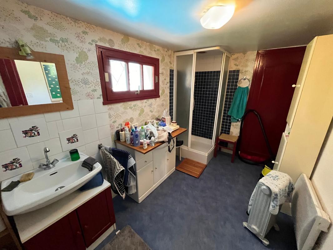 MAISON COMPRENANT ENTREE SEJOUR SALON CHEMINEE DONNANT SUR TERRASSE COUVERTE UNE CHAMBRE CUISINE SALLE DEAU WC VERANDA BUANDERIE EN RDC