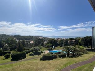 Situé au deuxième étage d'une résidence de standing avec gardien, à deux pas des commerces du quartier Beaurivage, confortable T2 d'une superficie d'environ 50 m2 et prolongé par une terrasse avec superbe vue dégagée sur l'océan et les montagnes. Prévoir quelques travaux de rafraîchissement. La résidence dispose d'un superbe parc arboré de plus de 2 hectares avec piscine.