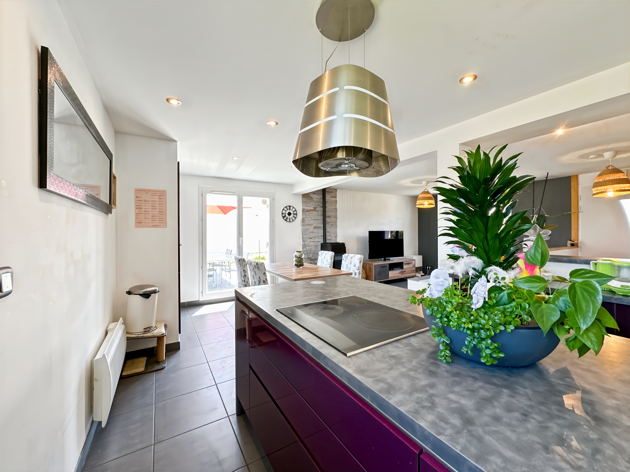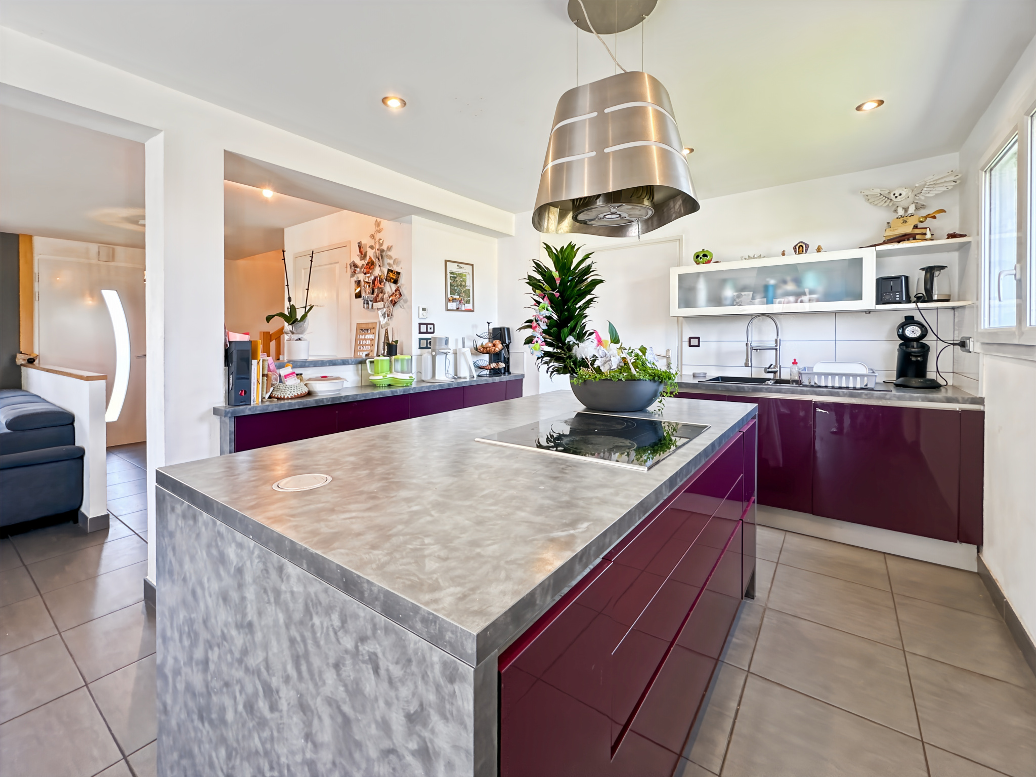 L'entrée ouvre sur le séjour avec cuisine ouverte pour une pièce à vivre de plus de 45 m2, un cellier accessible par la cuisine, garage.