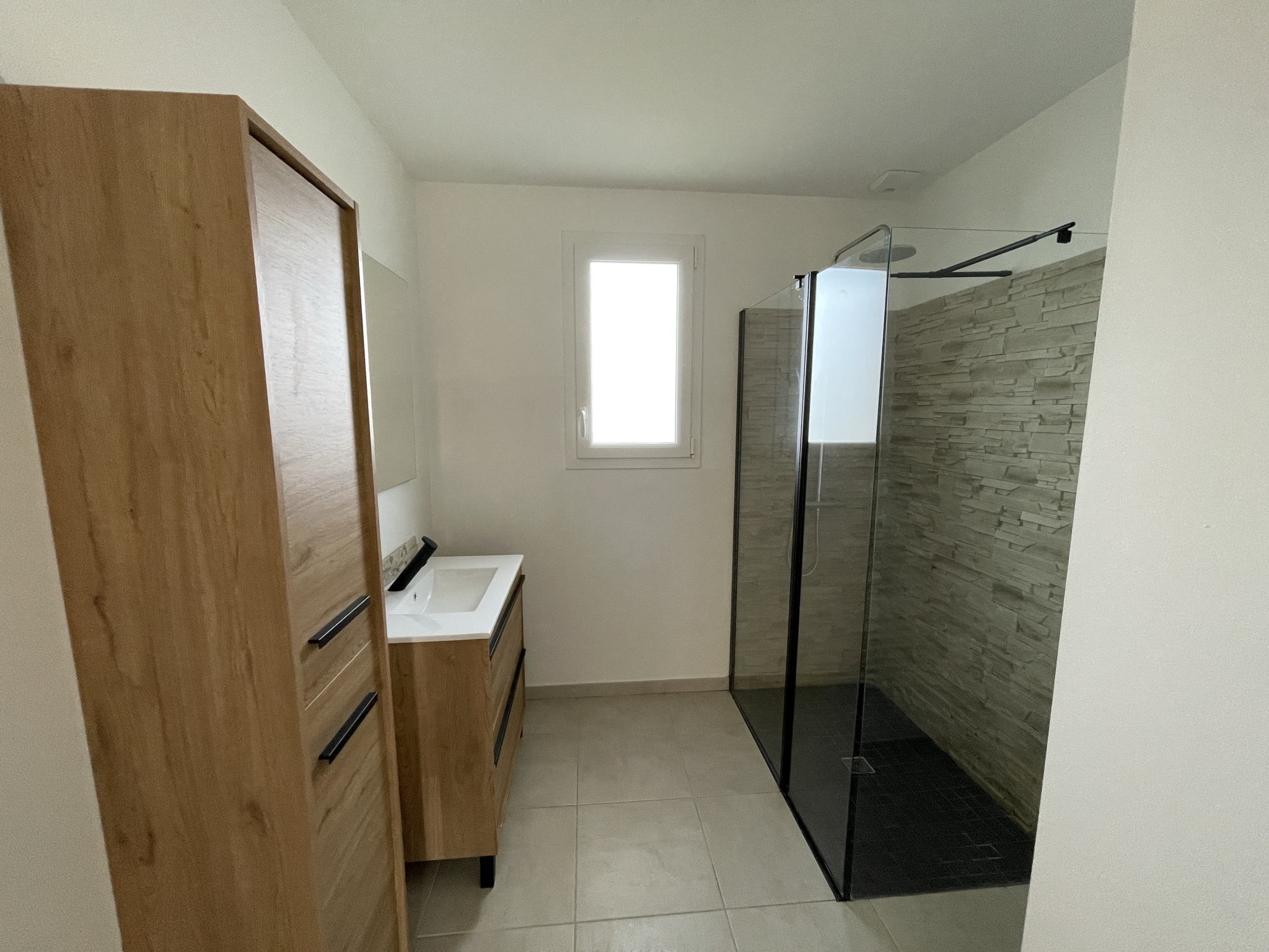 - Située à proximité du centre bourg, maison de plain-pied comprenant : un salon/séjour, un espace cuisine, wc, une salle de bains et 3 chambres. Le tout sur un terrain clos de 430 m2 avec garage attenant. Maison récente avec chauffage par radiateur (système pompe à chaleur).