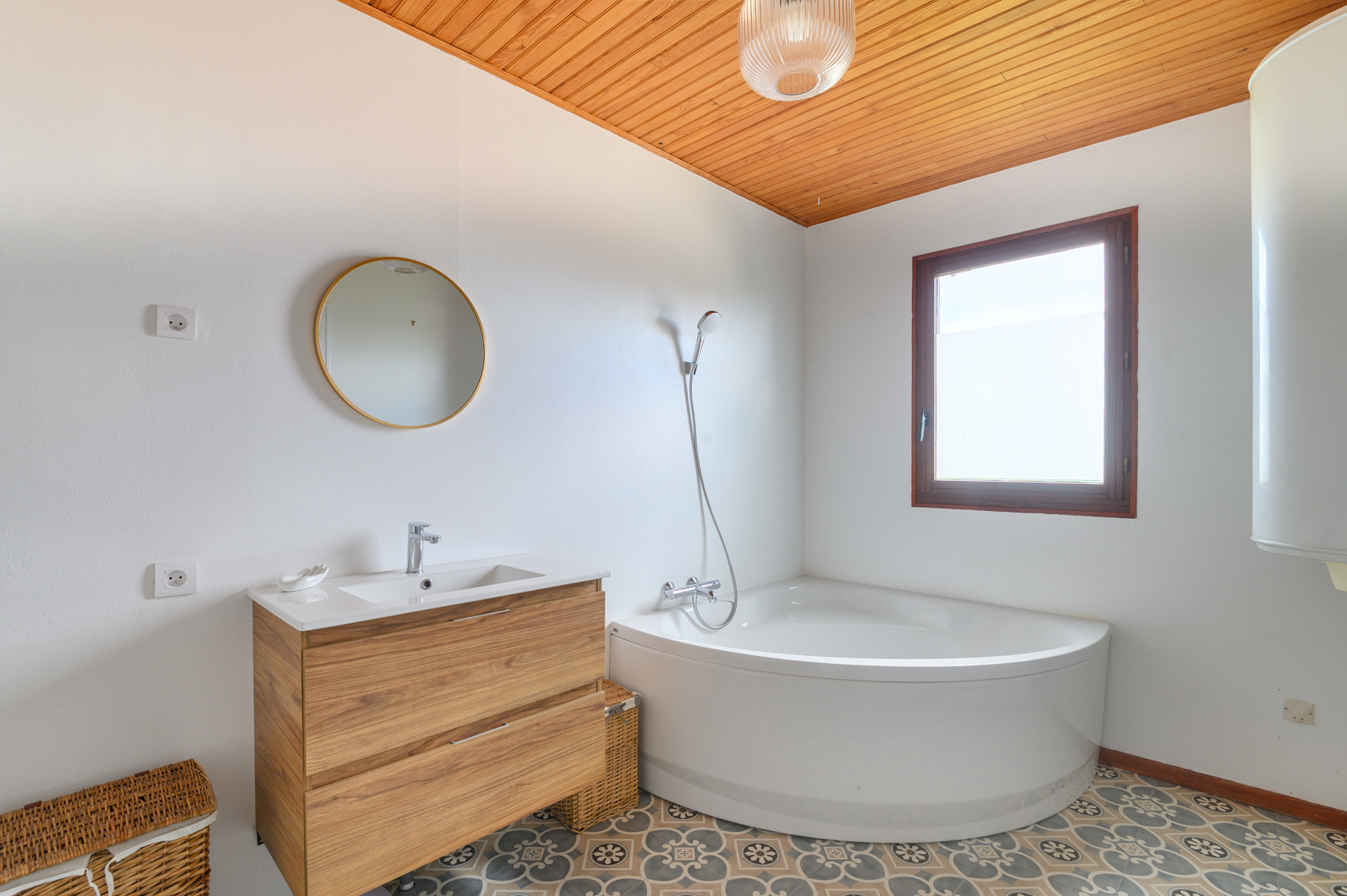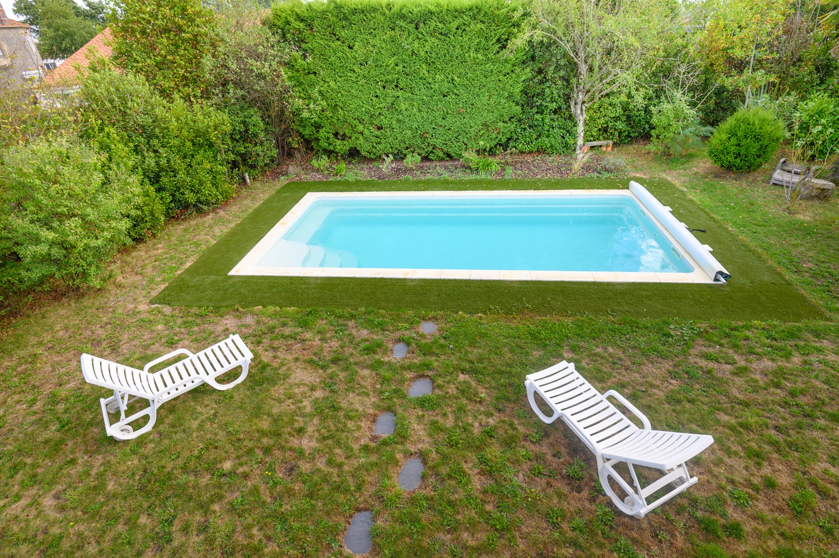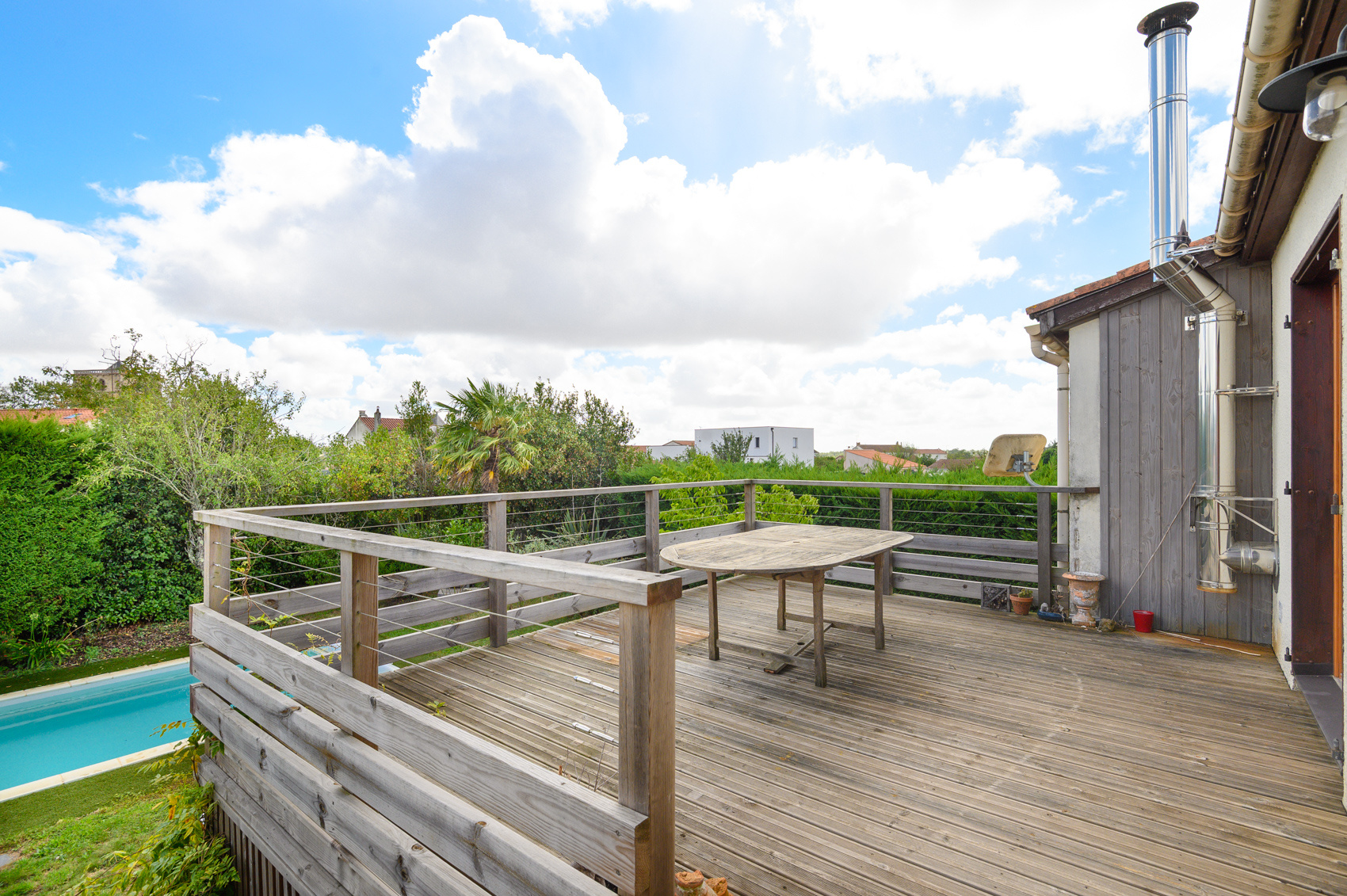 Une terrasse bois permettant l'accès à la piscine chauffée (8x3.80m profondeur 1.50) et au jardin arboré sans vis à vis. Garage et stationnements.