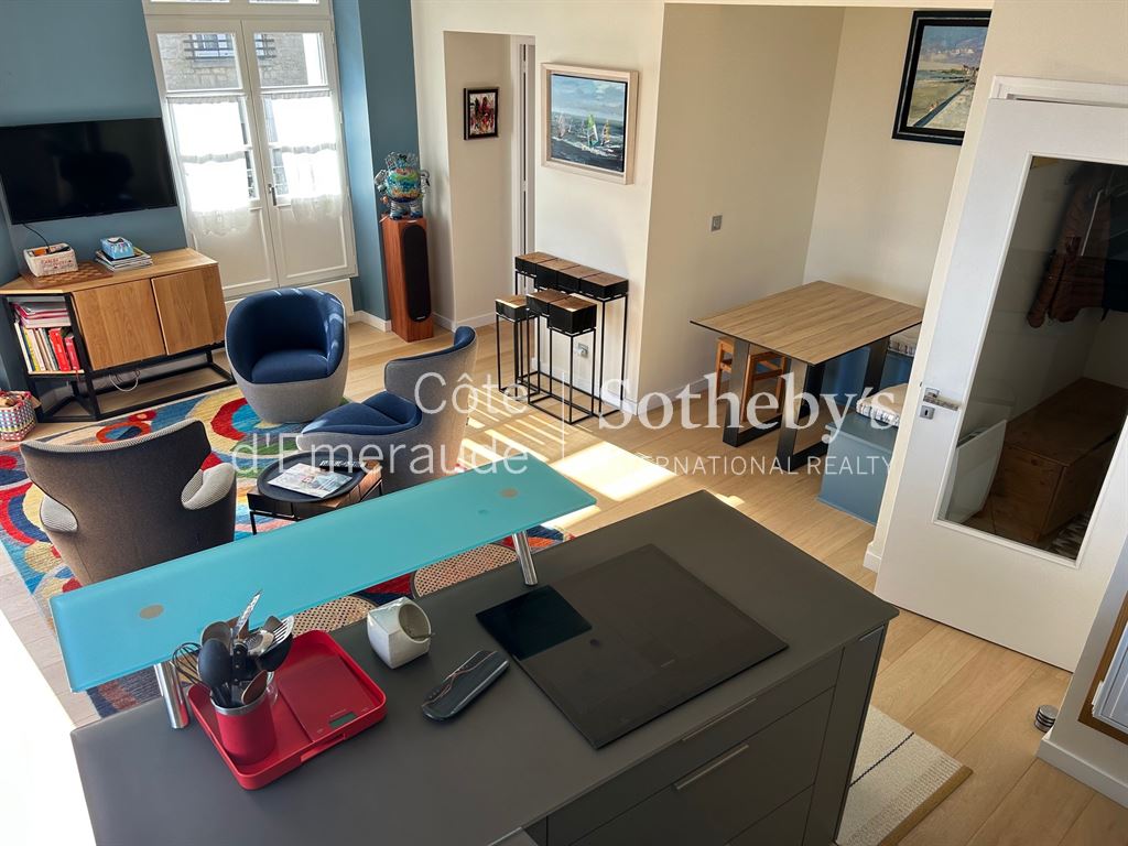En plein centre ville de DINARD - A proximité immédiate à pied des commerces et de la plage de l'Ecluse - Agréable appartement de type 3 (75 m²) en duplex avec un séjour / cuisine américaine aménagée et équipée, deux chambres et deux salles d'eau. Idéal pied à terre ou investissement locatif.