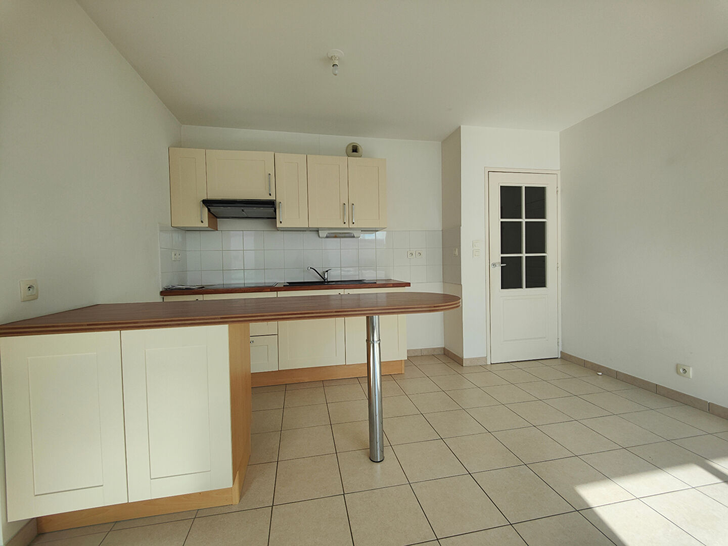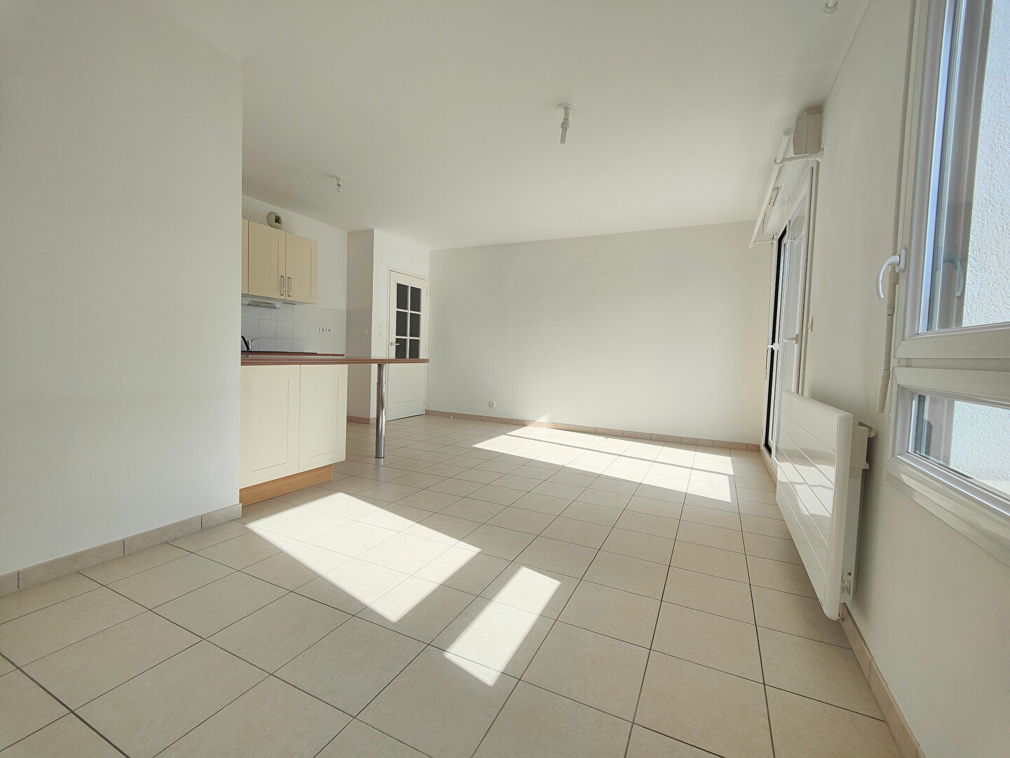 Une entrée avec un rangement desservant la pièce de vie composée d'un salon/ séjour, une cuisine aménagée et semi équipée ouverte, le tout donnant sur un balcon exposé Est, une chambre, une salle d'eau, des toilettes séparées, un cellier.