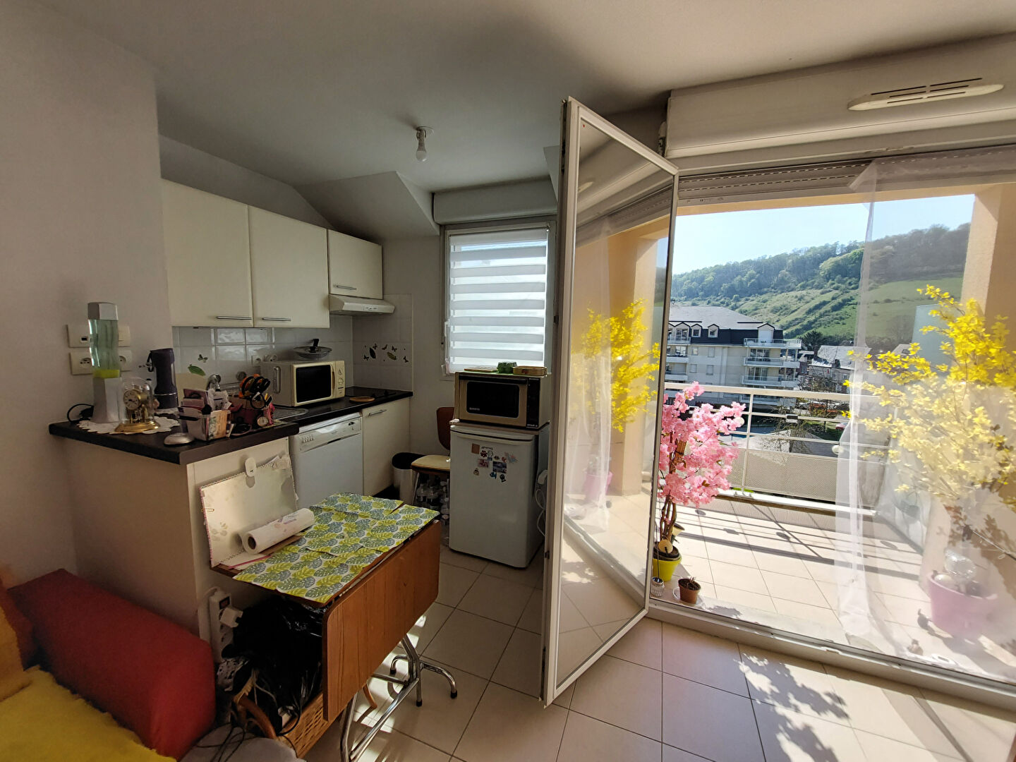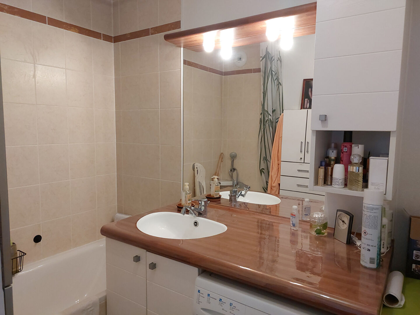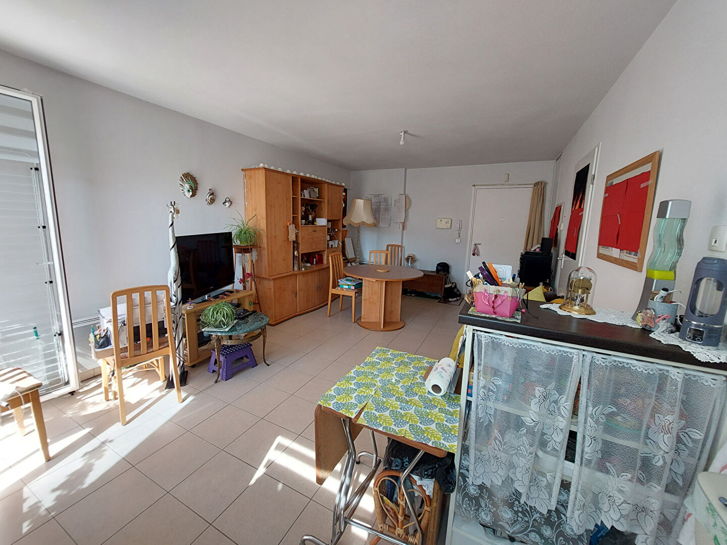 Il se compose d'un séjour salon et cuisine aménagée, un dégagement , une chambre avec placard, une salle de bains aménagée avec meuble sous vasque, baignoire et WC.