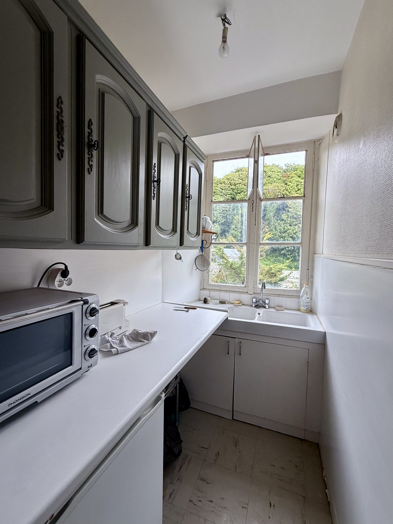 TROUVILLE SUR MER - En exclusivité - Dans la célèbre résidence des Roches Noires, loin du tumulte touristique, dans un cadre à la fois authentique et poétique, découvrez ce 2 pièces bénéficiant d'une vue dégagée sur la colline. En étage élevé avec ascenseur cet appartement dispose d'un séjour avec cuisine ouverte, une chambre, salle de bains, wc séparé. Possibilité de créer une petite chambre cabine en déplaçant la cuisine. Des travaux de traitement de mérule sont en cours dans l'appartement et sont pris en charge par la copropriété.