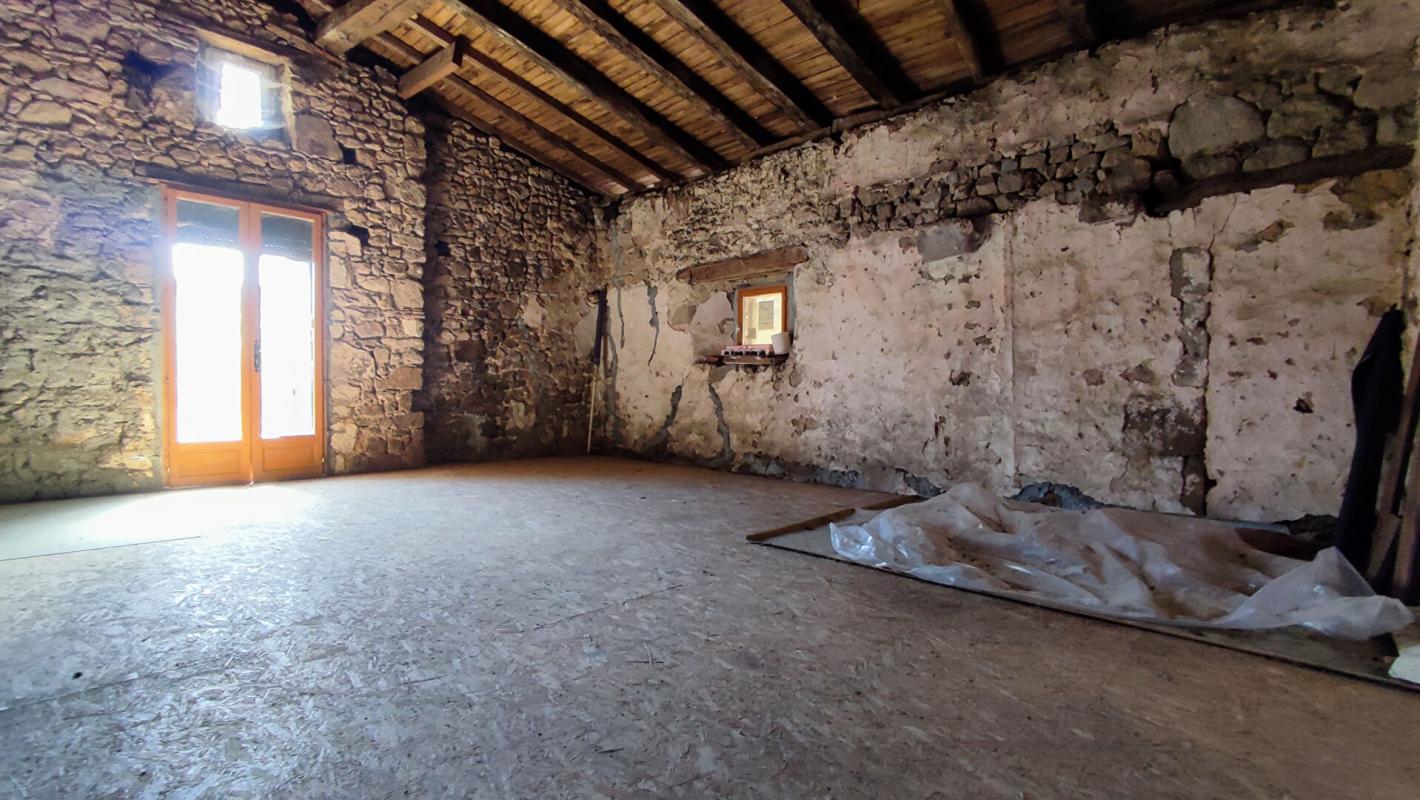 -Composé d'une entrée avec rangement desservant une cuisine aménagée, une salle à manger avec insert à foyer fermé avec répartiteur de chaleur, un wc, un cellier, une pièce de 30 m2 à finir de rénover