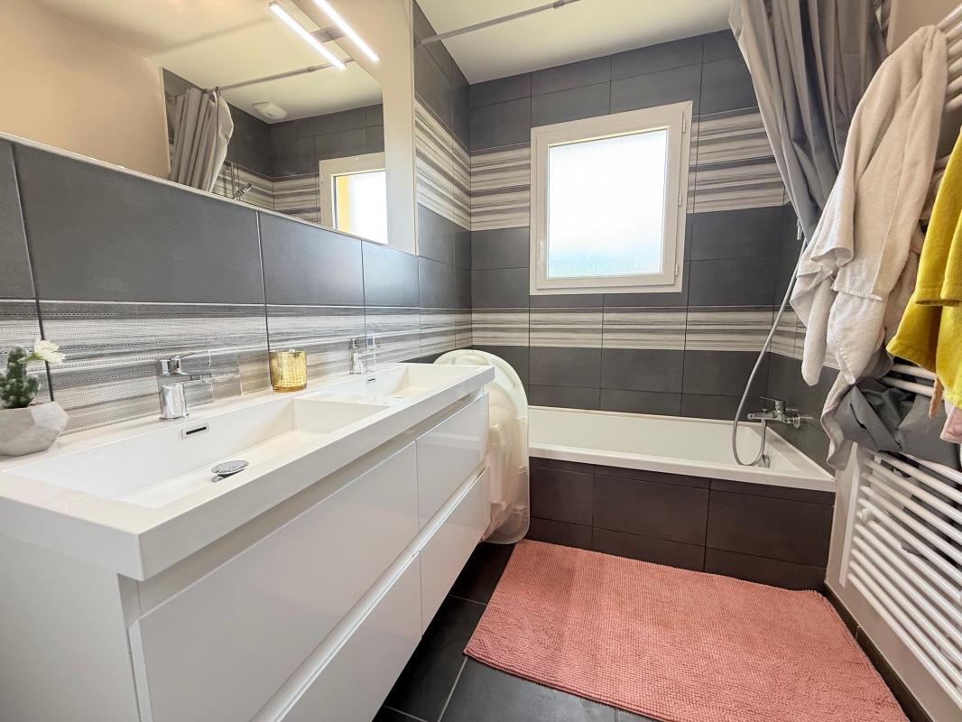 Avec une surface habitable de 89 m², elle comprend : un spacieux salon lumineux, une cuisine ouverte aménagée et équipée, 3 chambres confortables dont une suite parentale avec salle d'eau et dressing, une seconde salle de bain indépendante, un WC et un cellier.