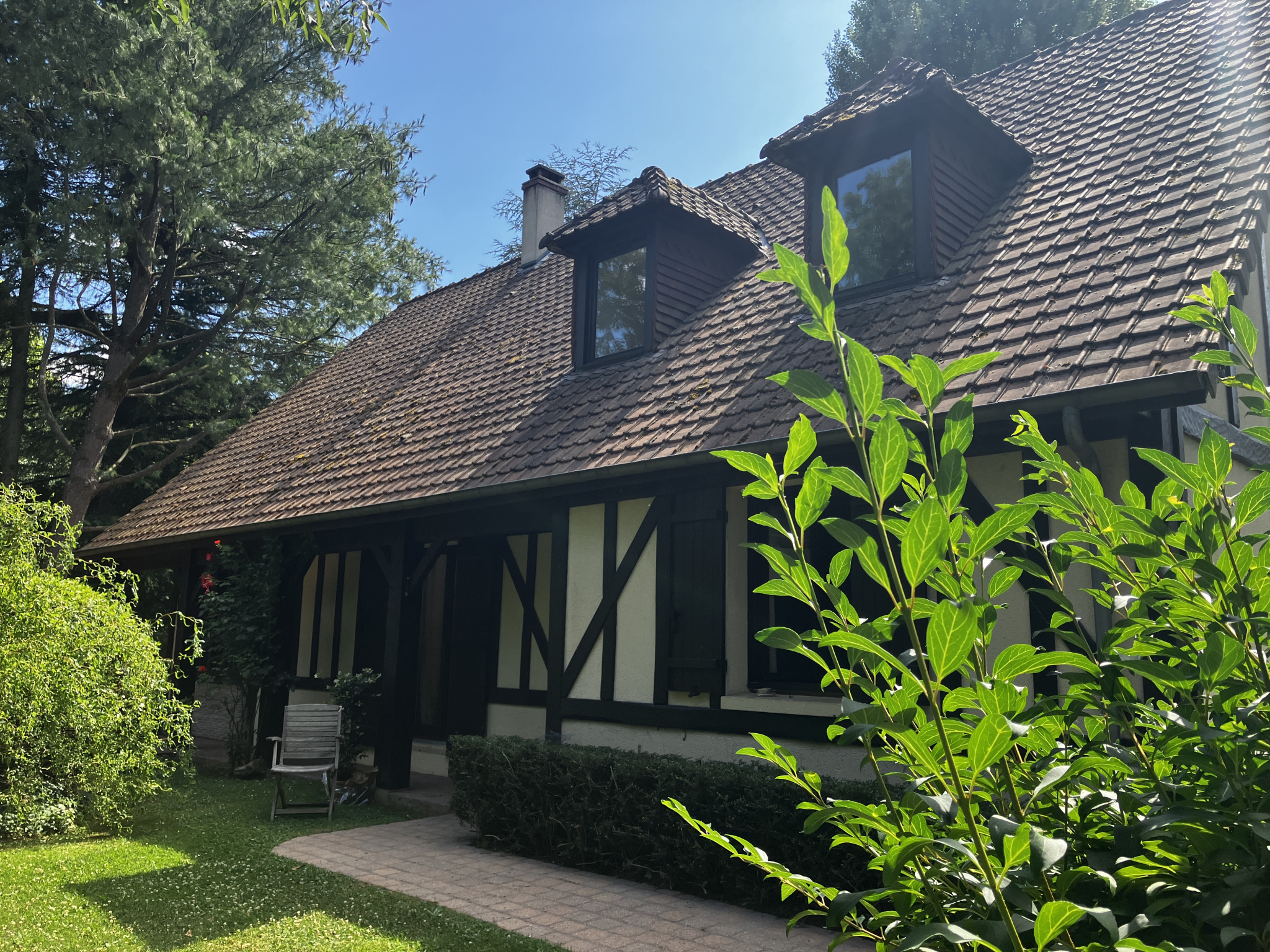 Jolie maison traditionnelle d'une surface habitable de 166.9 m2 située dans une petite commune et édifiée sur un beau terrain arboré.