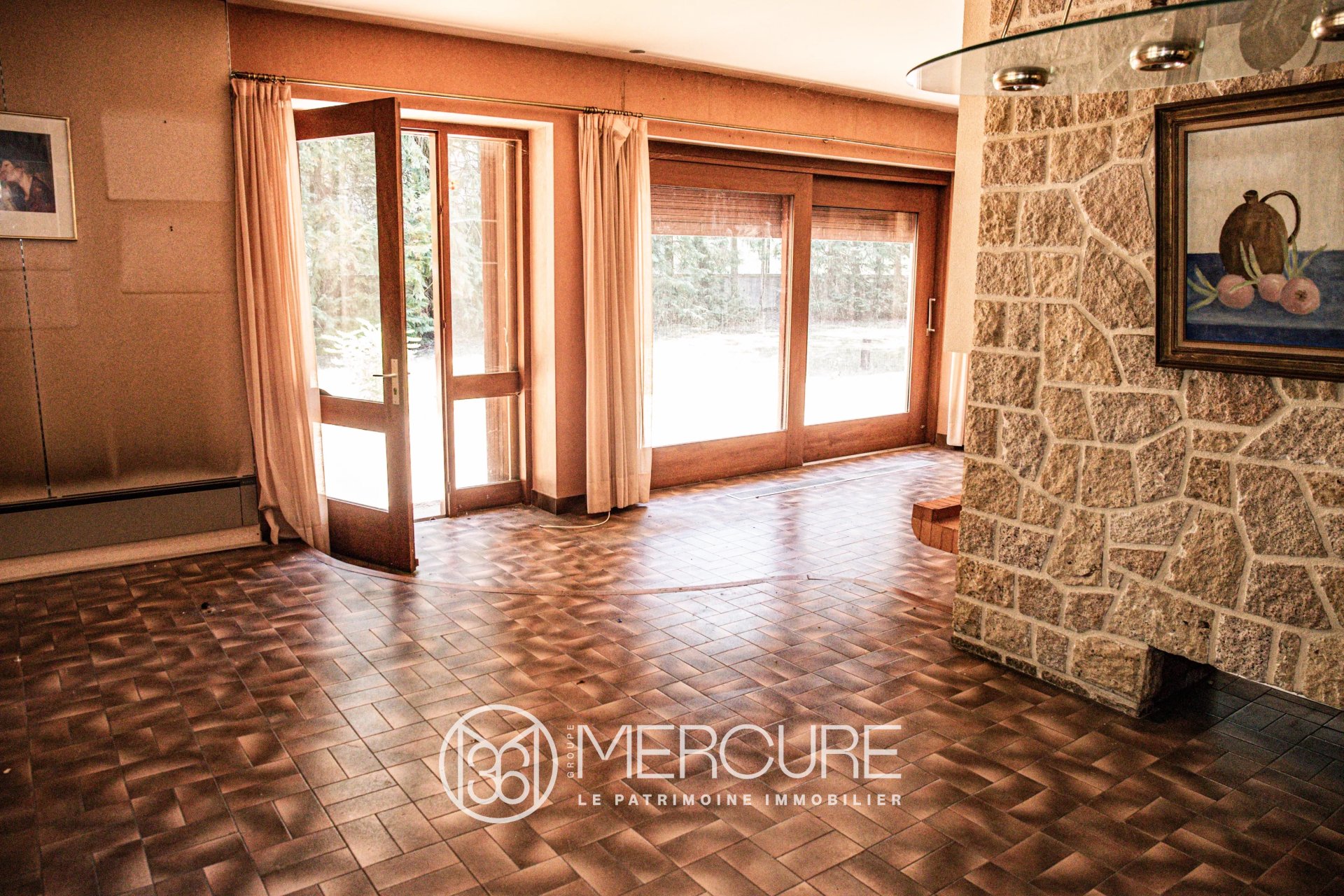 Avec sa douzaine de pièces, l'intérieur de la maison se distingue par une architecture et une décoration très seventies, lui conférant une belle originalité. Le vaste espace de vie peut accueillir une grande famille. Un petit appartement indépendant, avec cuisine, a été aménagé.