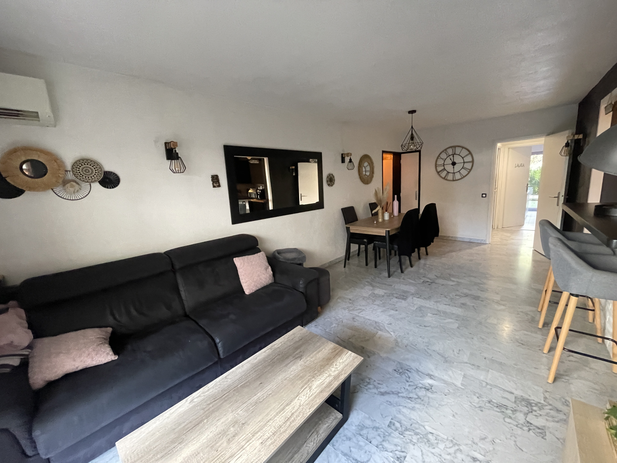 NICE NORD, Proche Tennis GORBELLA, idéalement situé proche tous commerces, écoles, tramway, Beau 3 PIECES de 62 m2 au rez-de-jardin d'une Résidence de Standing. Terrasse de 10 m2 et Jardin de 27 m2, Exposition traversante Sud-Nord. Jolie cuisine américaine équipée en parfait état. Appartement entièrement rénové, climatisation, possibilité d'un grand garage en sous-sol avec cave attenante en sus, chauffage et eau chaude collectifs, charges annuelles : 3000 EUR, DPE : C-82 GES : C-25 , copropriété de 227 lots dont 81 appartements. Les informations sur les risques naturels sont disponibles sur www.georisques.gouv.fr