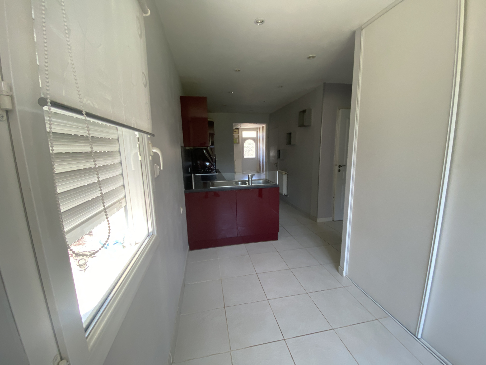 Cuisine aménagée et équipée, salle à manger, salon, chambre, 2 pièces, salle de douche et wc.