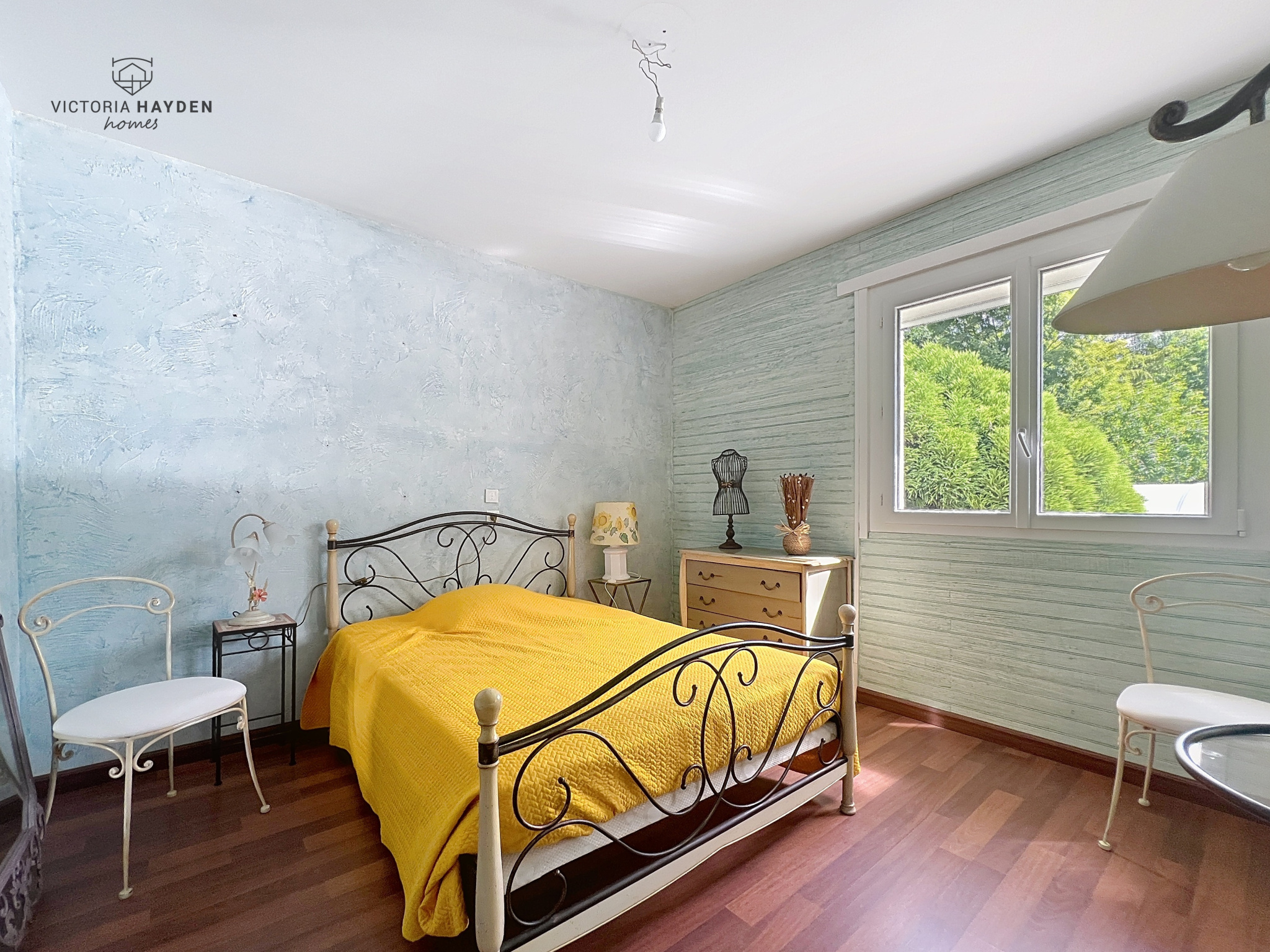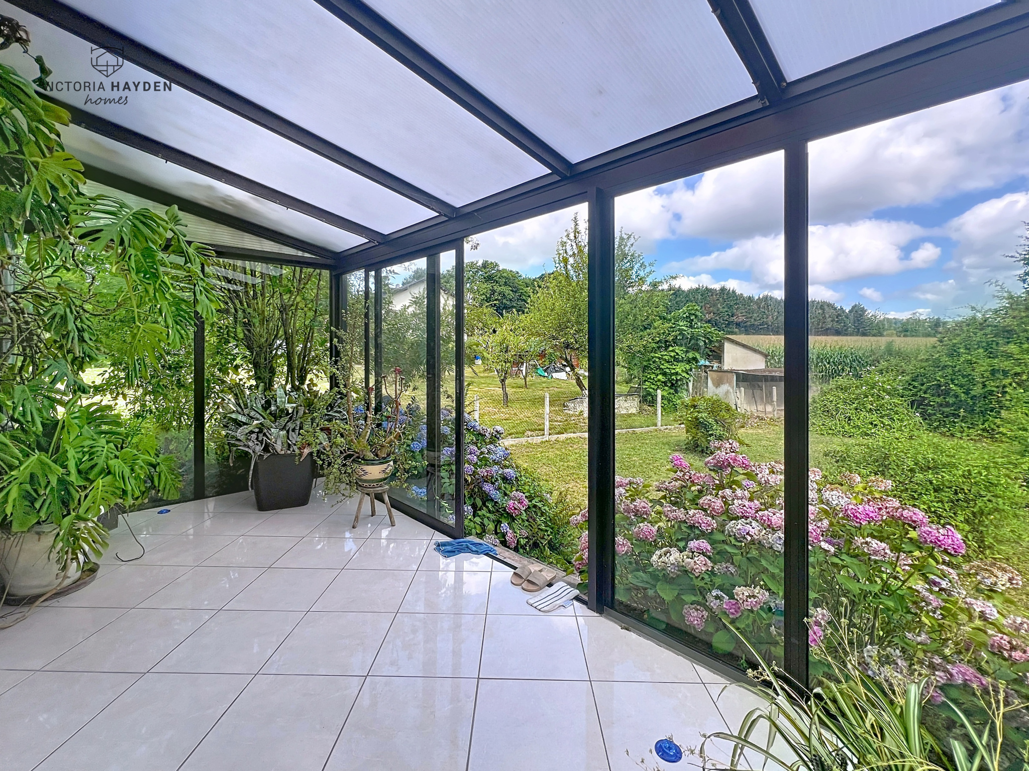 Elle comprend une très belle pièce à vivre avec cheminée insert baignée de lumière et donnant sur une grande terrasse, une véranda chauffée, une cuisine spacieuse équipée, 3 chambres avec rangements, un bureau, salle d'eau et 2 wc.