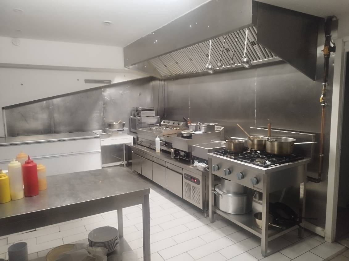 Surface totale : 130 m2 sur 2 niveaux 26 places en salle + 20 en terrasse Avec extraction 400 MM, gaz, triphasé