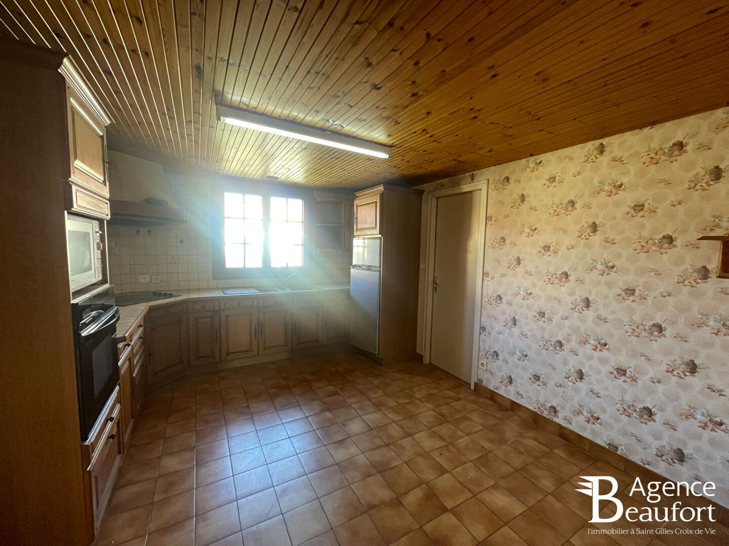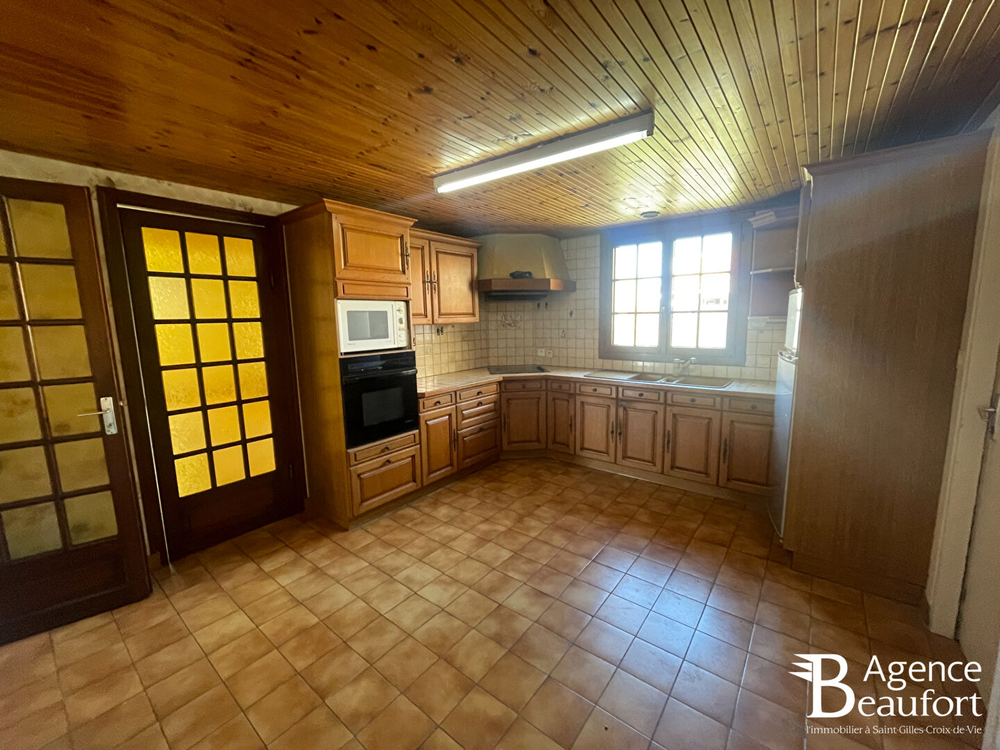 Centre Croix de Vie, quartier calme, maison de plus de 100 m² hab à rafraîchir  sur 499 m² de terrain comprenant : entrée, séjour-salon de 40 m² avec cheminée, cuisine Aménagée et équipée, 2 chambres, salle d'eau, wc, buanderie et garage.