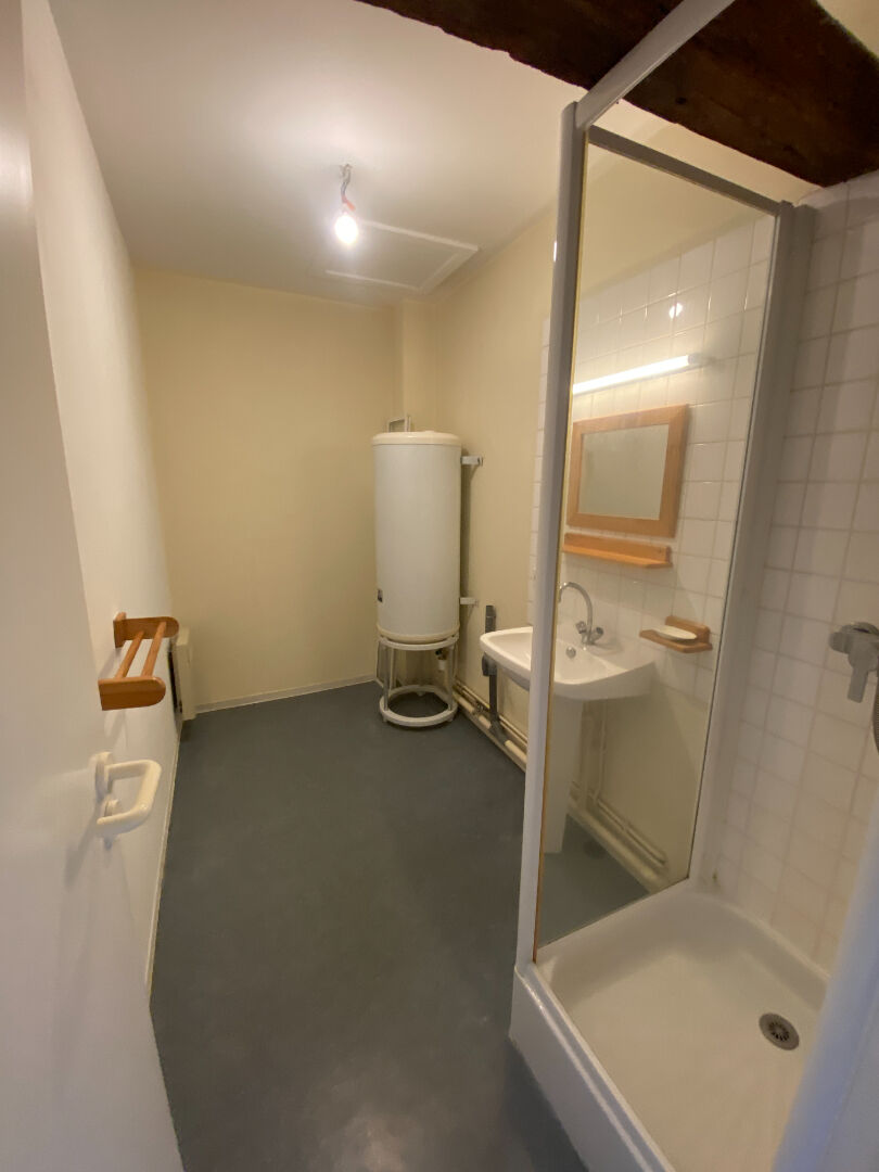 Appartement de type T2 en duplex 52 m² comprenant : entrée avec placard, pièce de vie avec coin cuisine aménagée et équipée, wc. A l'étage : palier desservant chambre, salle d'eau, placard. Débarras sur palier. Chauffage individuel électrique.