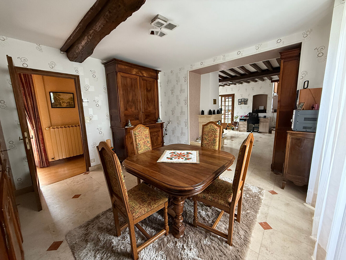 Confort moderne : fenêtres PVC double vitrage, volets roulants manuels, chauffage bois + chaudière fioul.