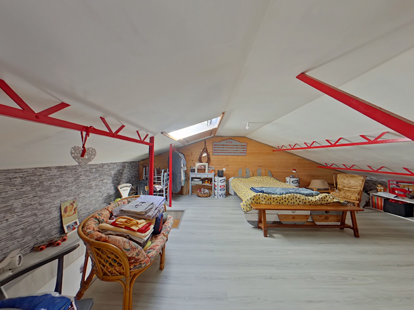 A l'étage, mansardée deux grandes chambres en enfilade.