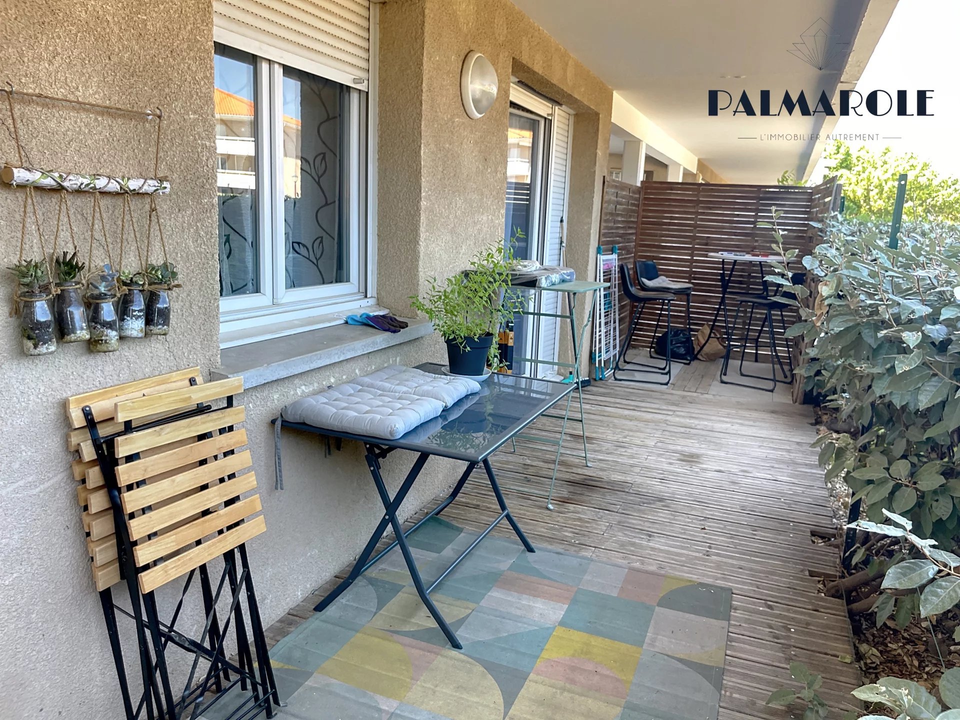 À l’extérieur, une grande terrasse privative permet de profiter pleinement des journées ensoleillées. Avec une place de parking attitrée est également incluse.