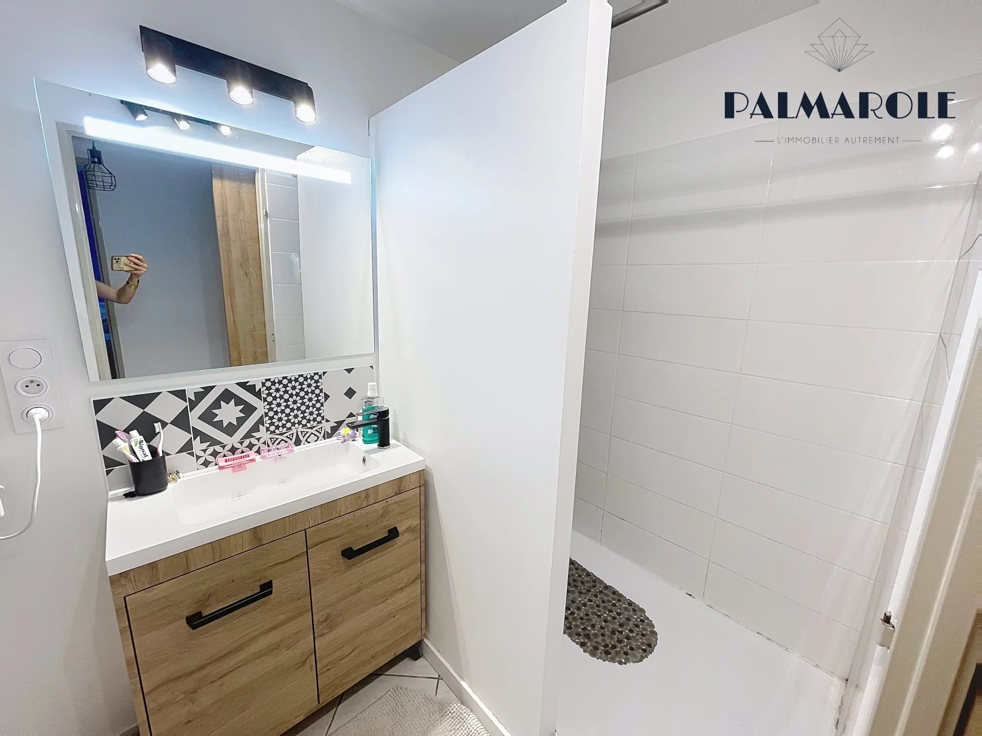 Il se compose d’une cuisine moderne, entièrement rénovée et équipée, ouverte sur un grand salon lumineux, idéal pour recevoir ou se détendre.