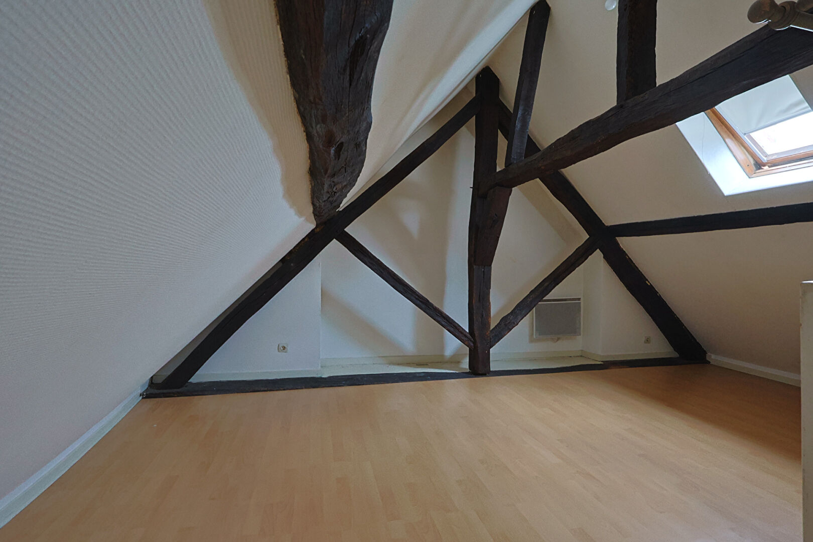 À l'étage, une pièce mansardée avec poutres apparentes offre un espace supplémentaire pouvant convenir pour un bureau ou une chambre d'appoint.