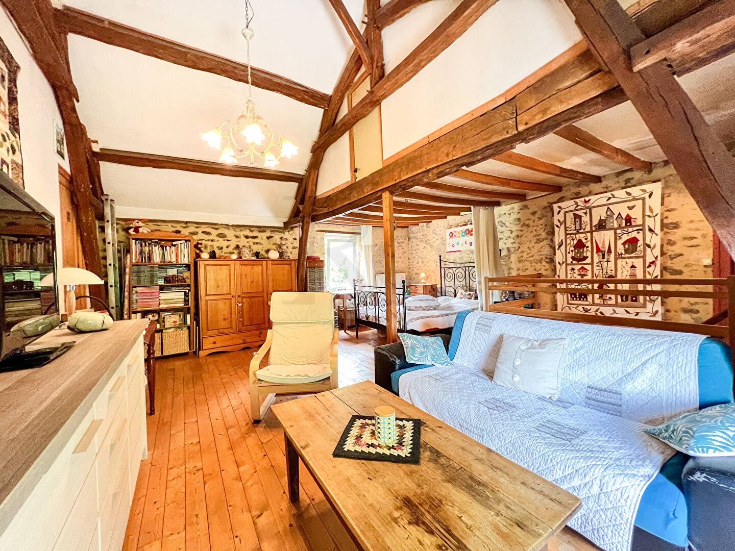 L'étage abrite un salon baigné de lumière et de deux chambres supplémentaires, confortables et propices à la détente.