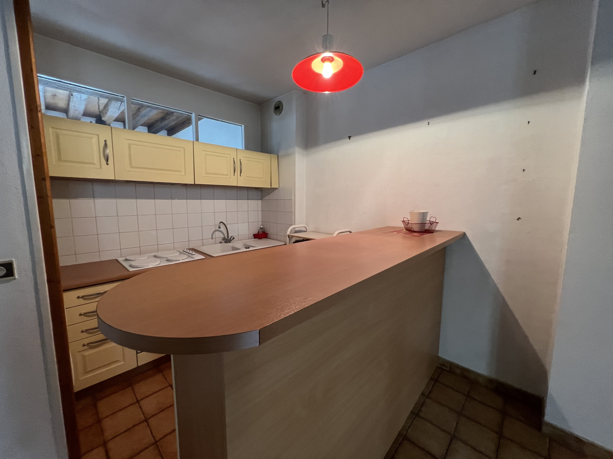Il se compose d'une entrée, de WC indépendants, d'une spacieuse pièce de vie avec solivage apparent, de deux chambres, ainsi que d'une grande terrasse idéale pour profiter des beaux jours.