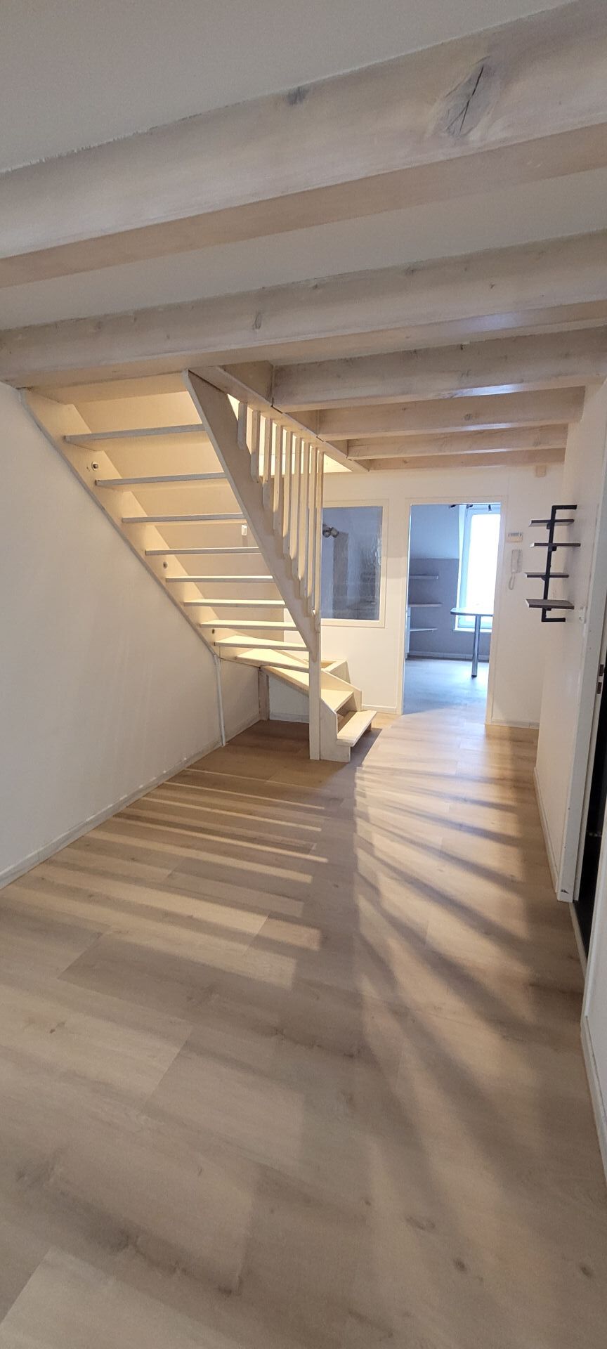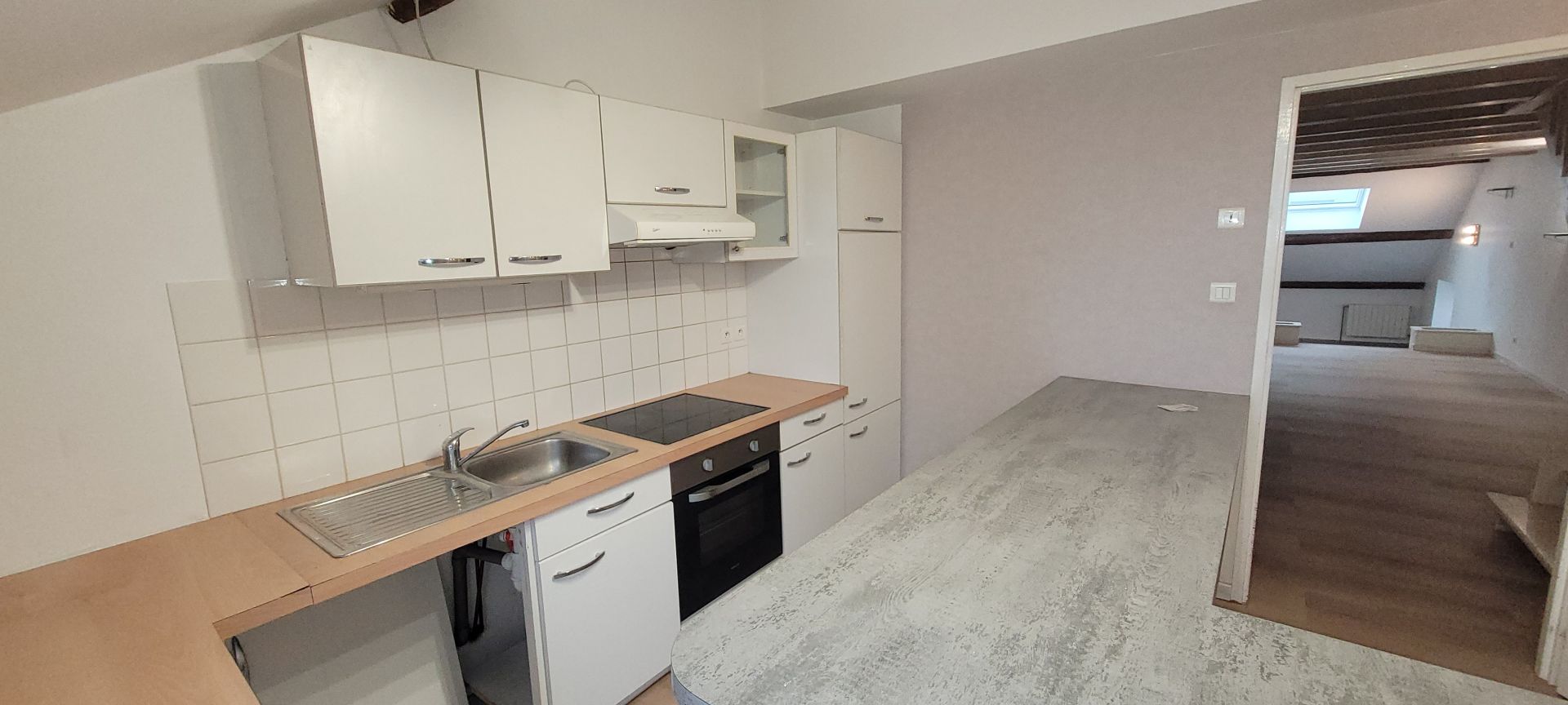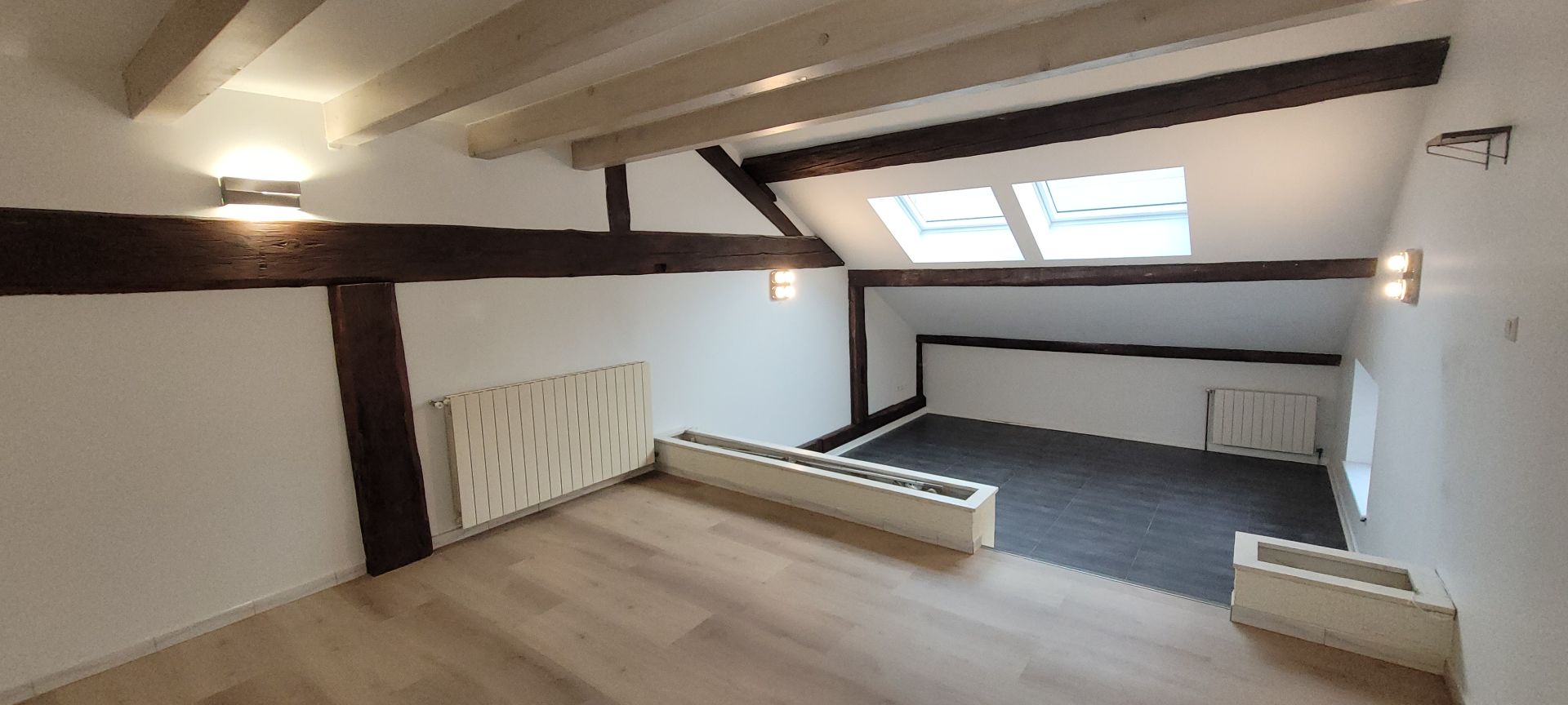 Beau DUPLEX de 77 m2 environ au 1er étage comprenant une entrée avec placards, cellier/chaufferie, cuisine meublée et équipée, vaste salon séjour sur 2 niveaux, salle de bains neuve avec baignoire et douche, 2 chambres au dessus dont une avec dressing. CC gaz individuel. Proche toute commodités.